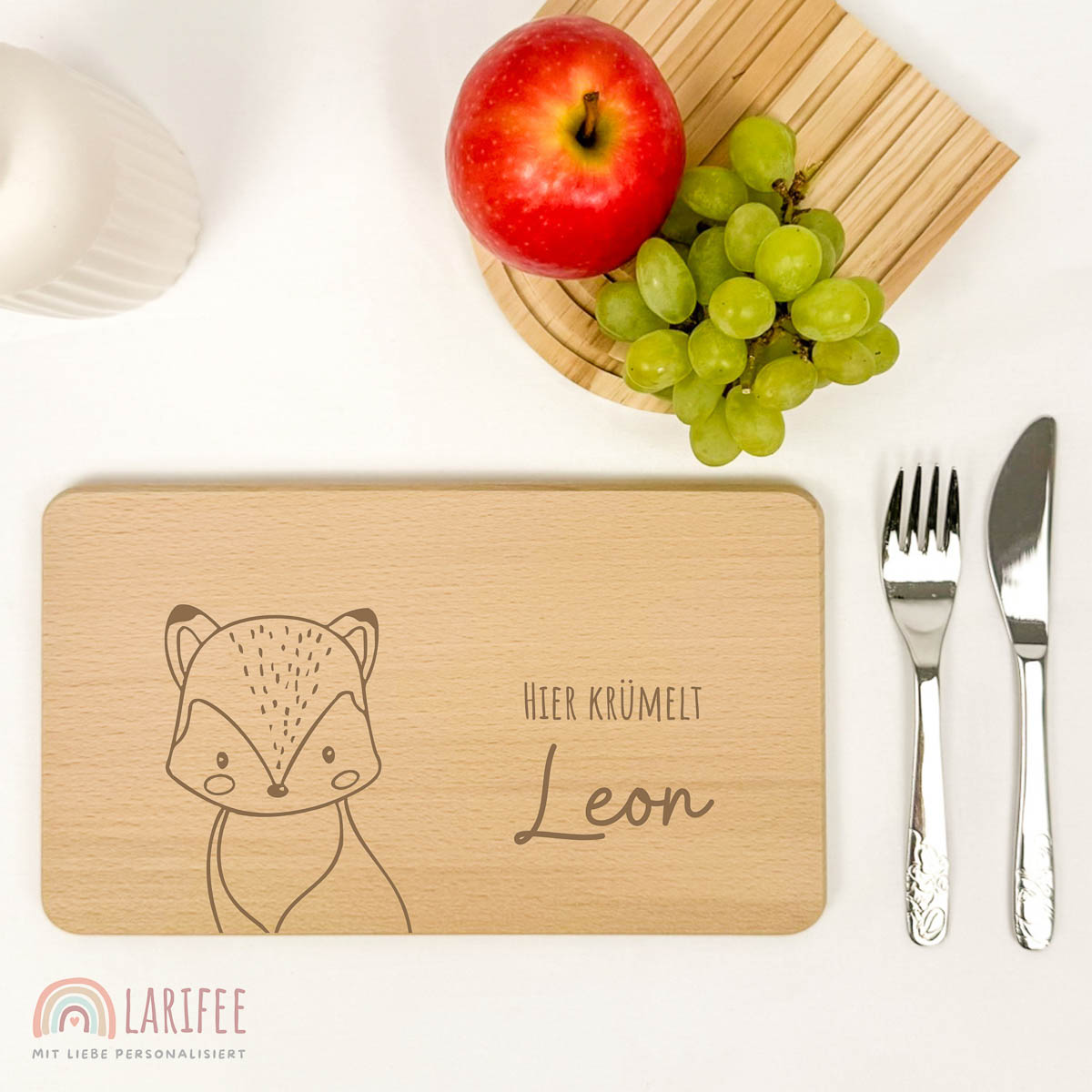 • Frühsücksbrettchen Holz personalisiert – Fuchs
