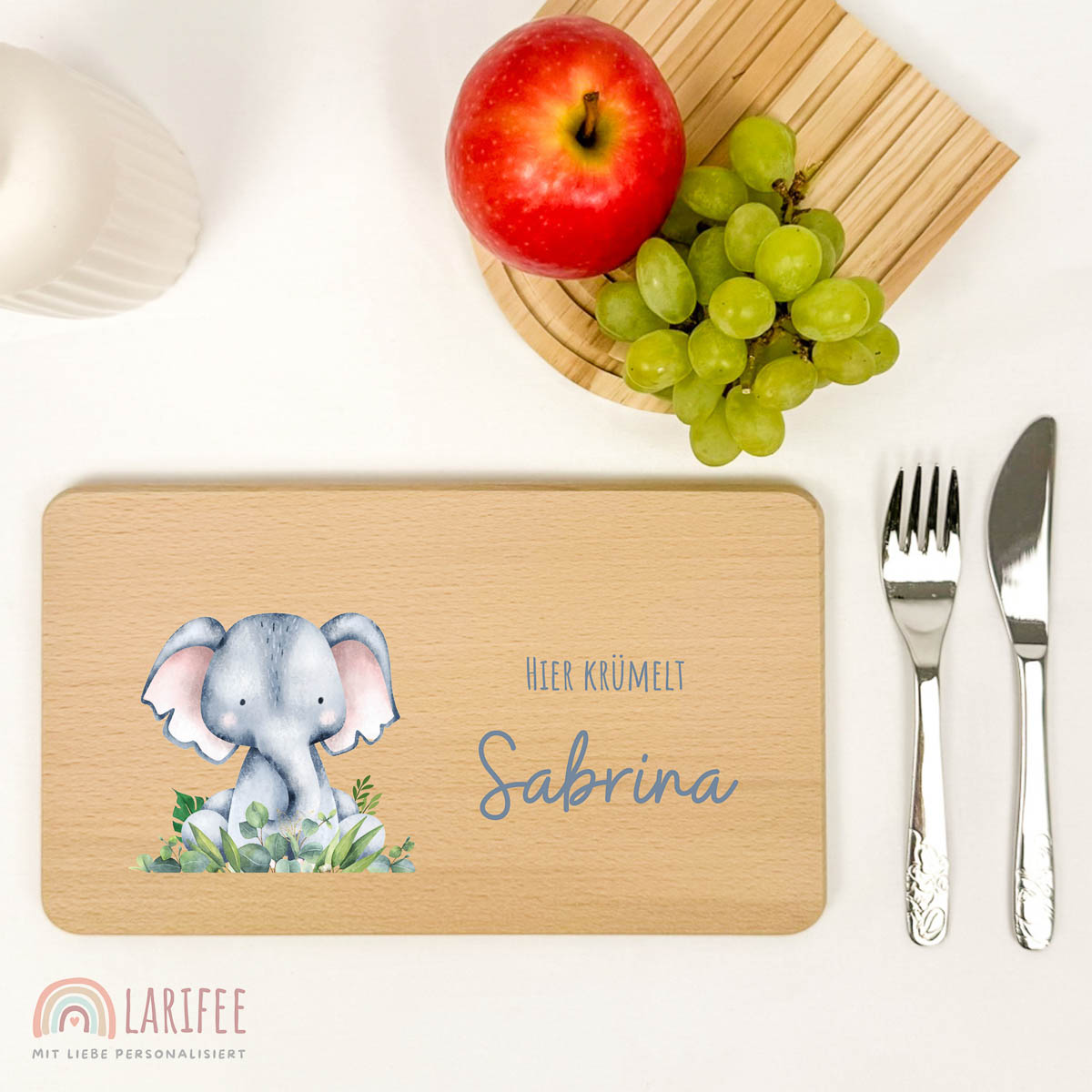 • Frühstücksbrettchen Holz personalisiert – Elefant