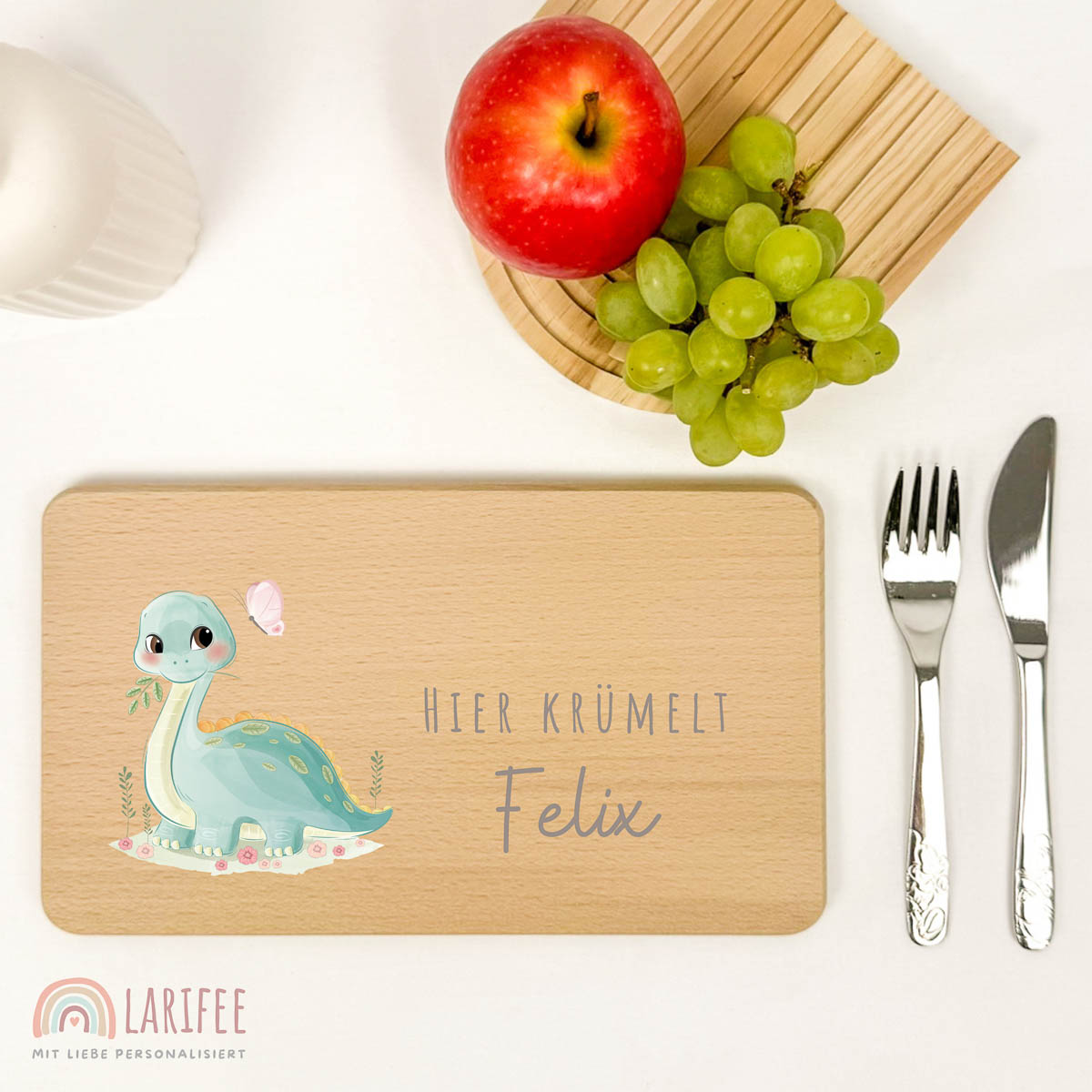• Frühstücksbrettchen Holz personalisiert – Langhals Dino
