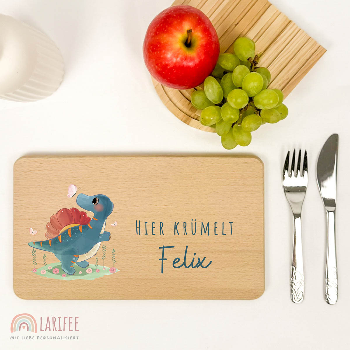 • Frühstücksbrettchen Holz personalisiert – Dino