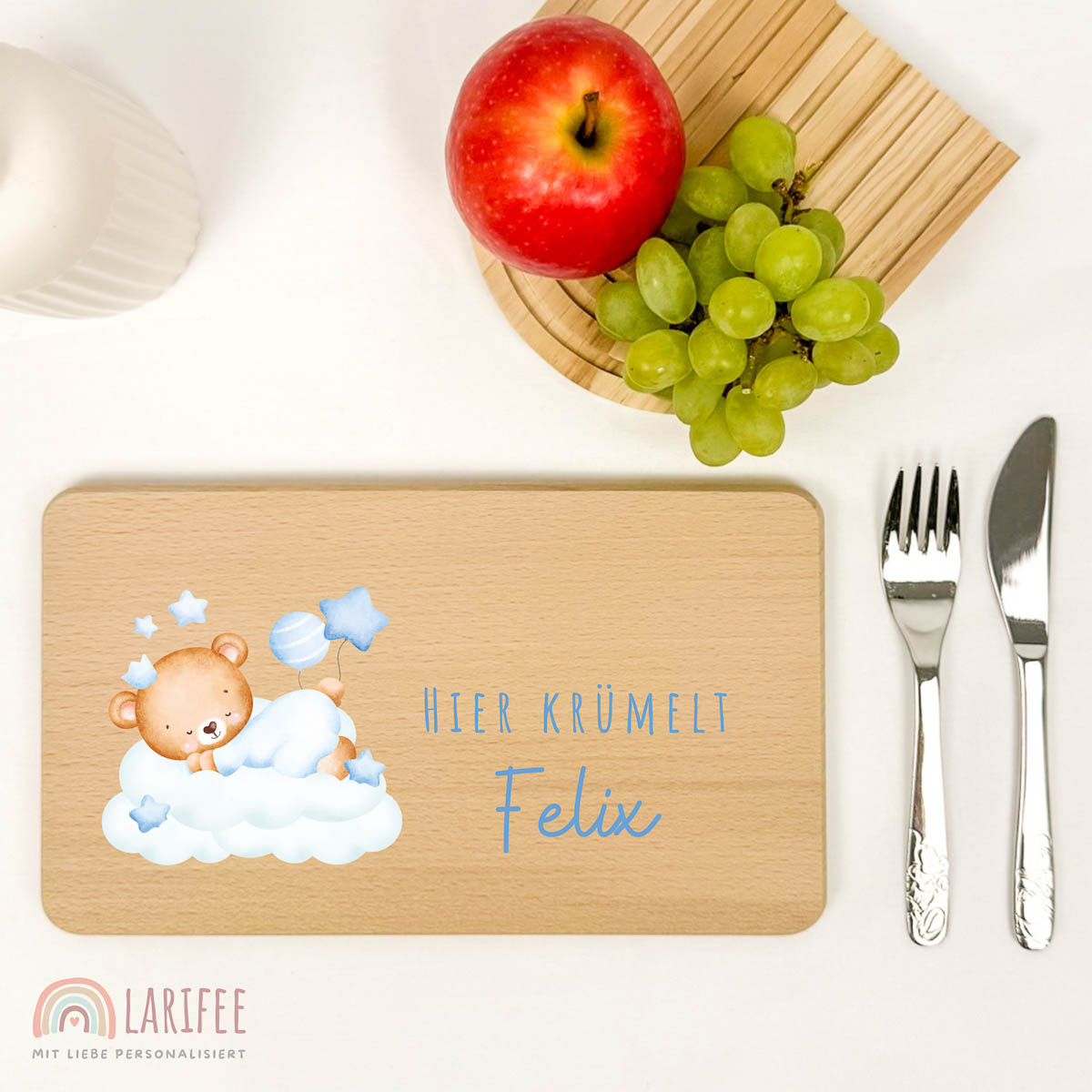 • Frühstücksbrettchen Holz personalisiert – Bär auf Wolke