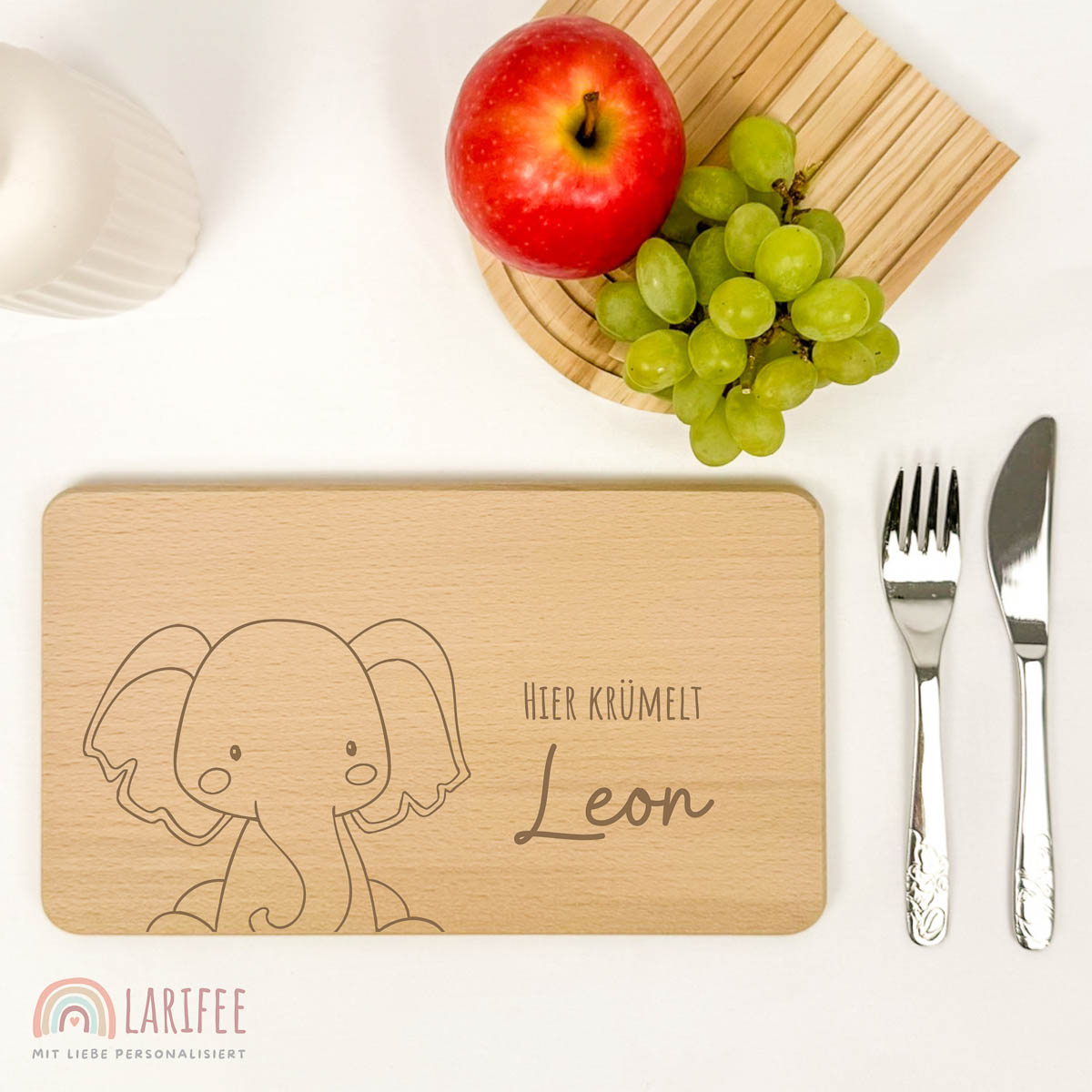 • Frühsücksbrettchen Holz personalisiert – Elefant