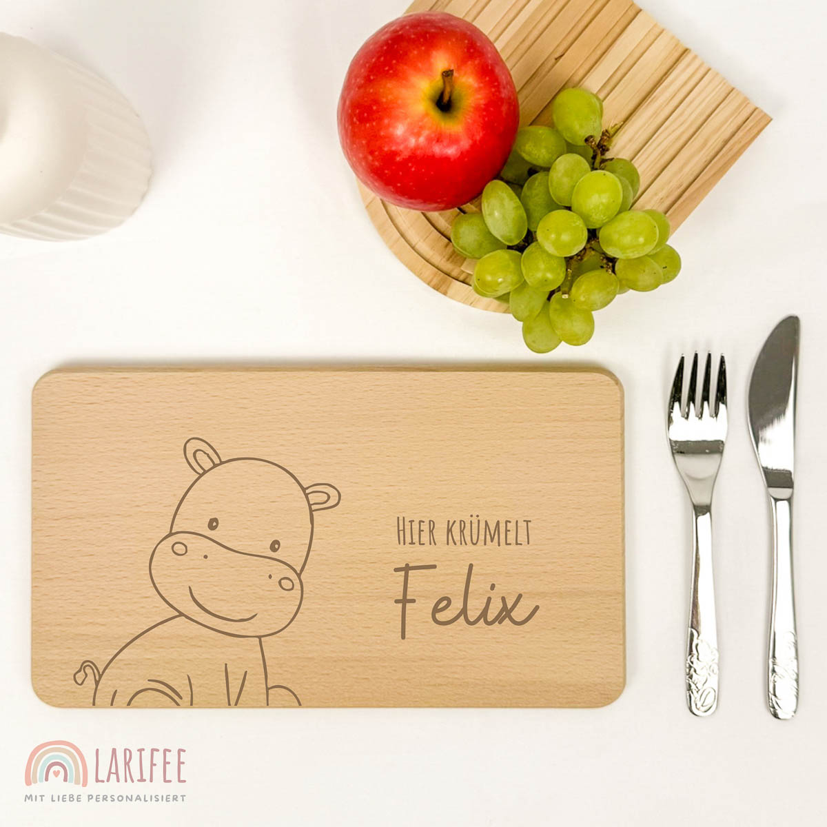 • Frühsücksbrettchen Holz personalisiert – Nilpferd