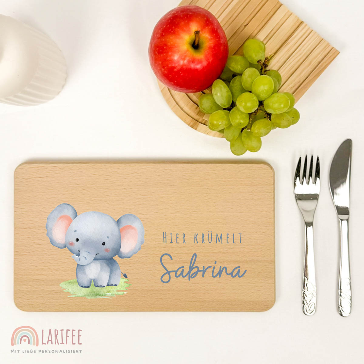 • Frühstücksbrettchen Holz personalisiert – Elefant