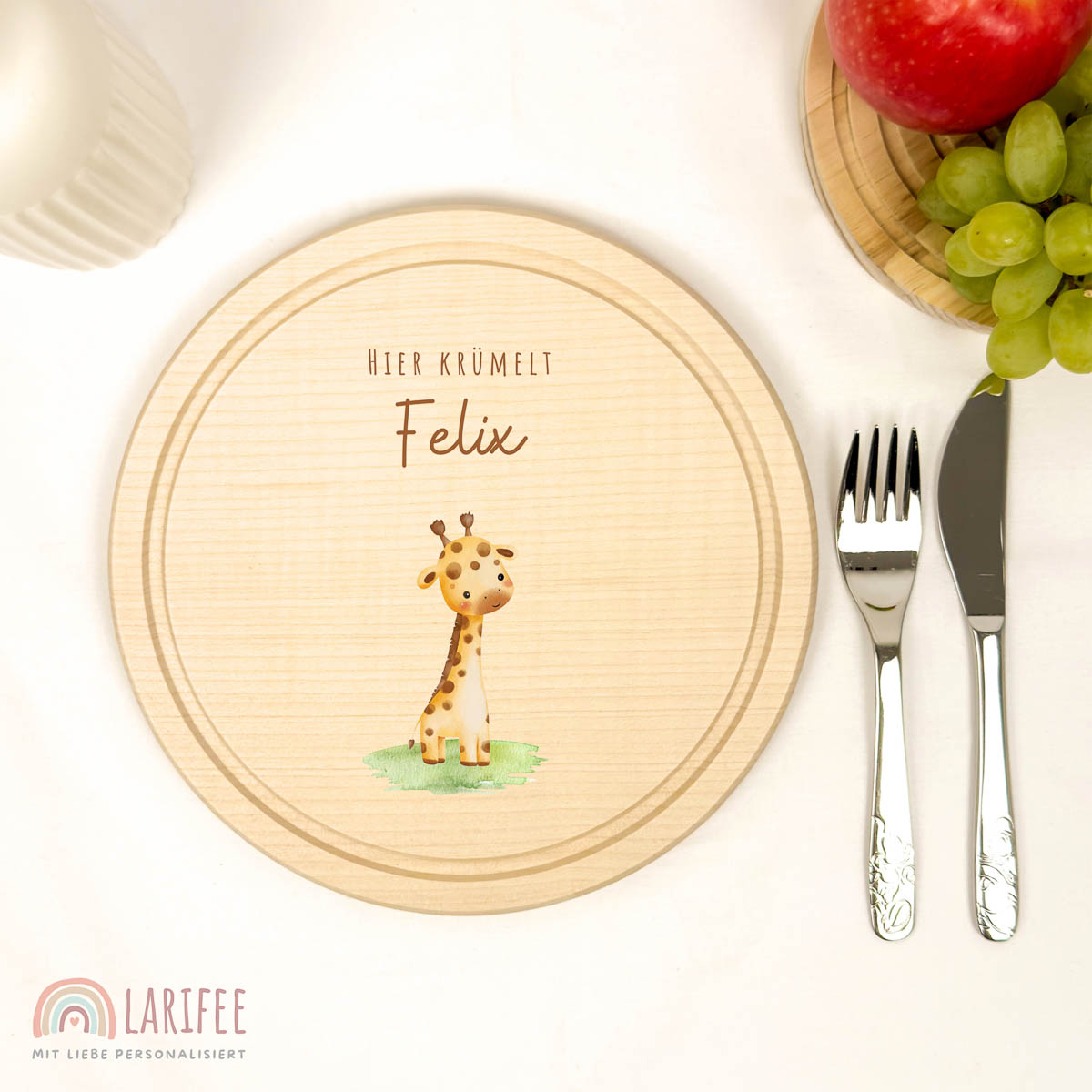• Frühstücksbrettchen Holz rund personalisiert – Giraffe