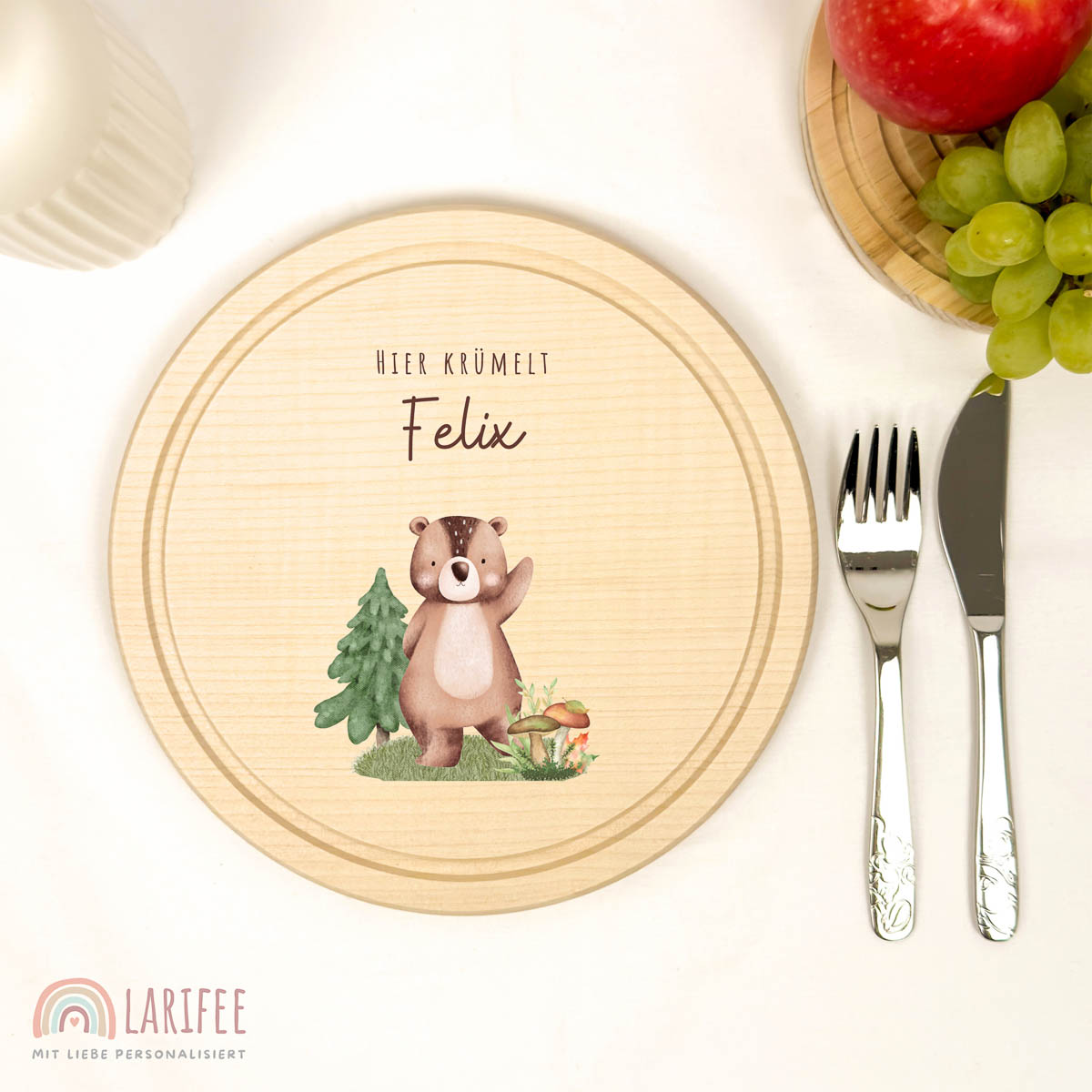 • Frühstücksbrettchen Holz rund personalisiert – Bär