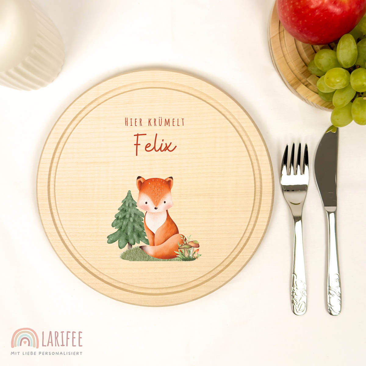 • Frühstücksbrettchen Holz rund personalisiert – Fuchs