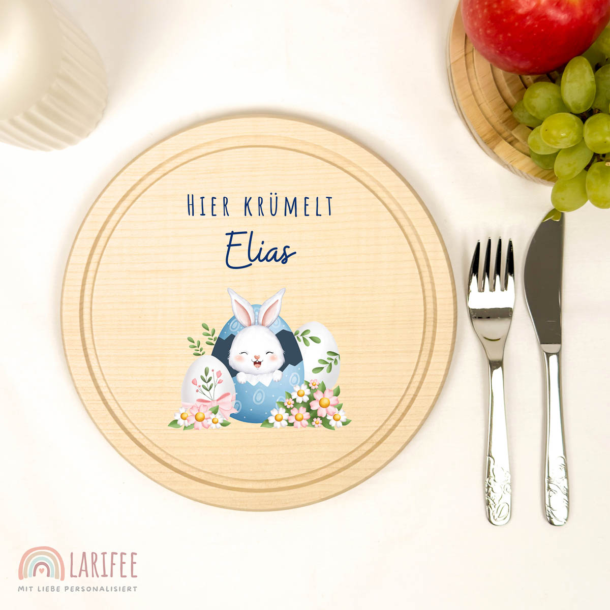 • Frühstücksbrettchen Holz rund personalisiert – Ostern