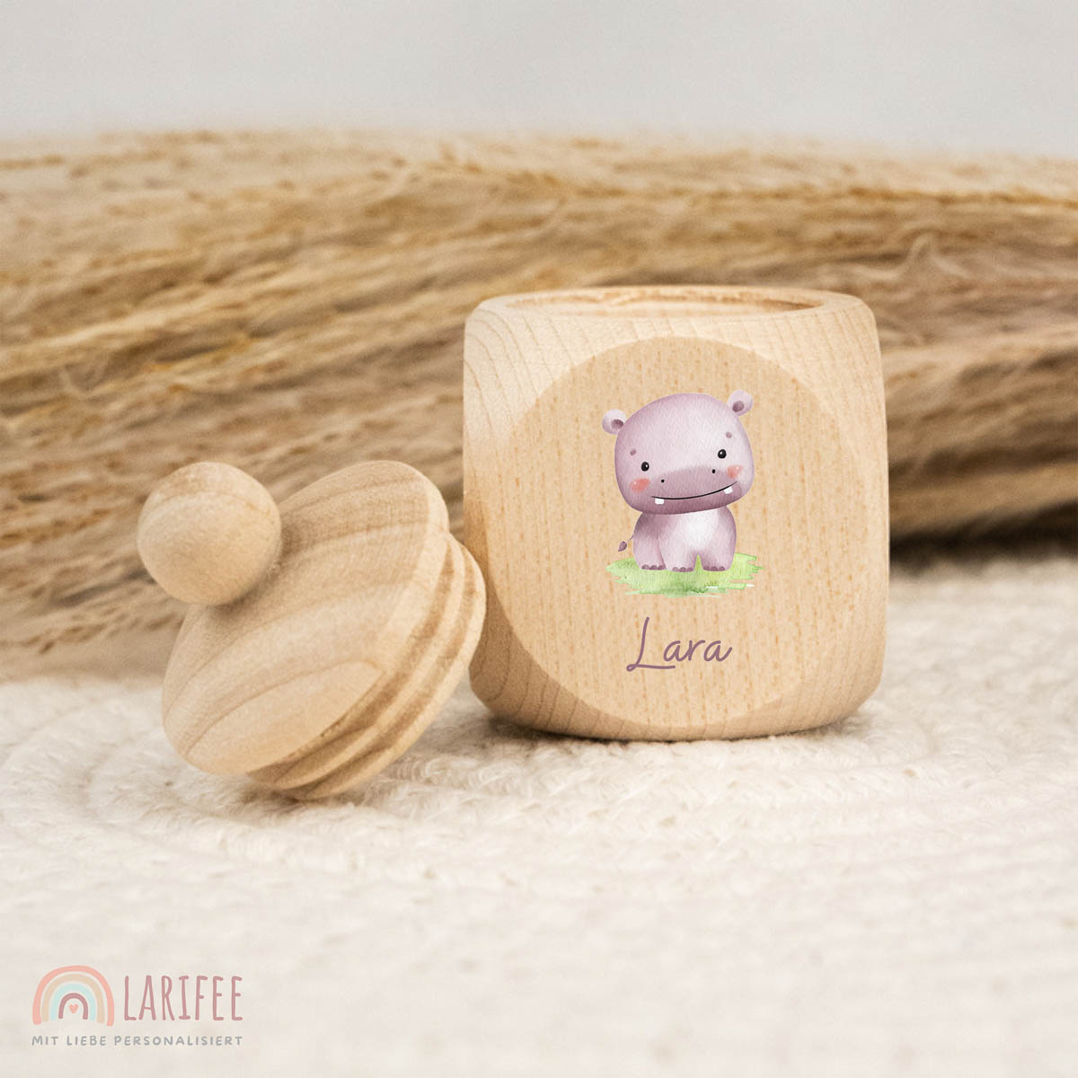 • Zahndose Holz mit Name Personalisiert – Nilpferd Baby