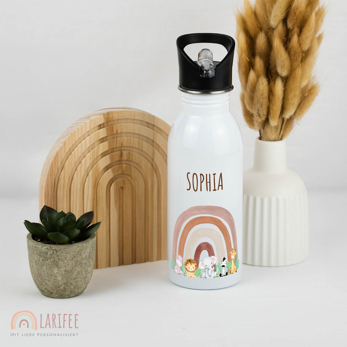 • Trinkflasche Kinder personalisiert – Safari Tiere