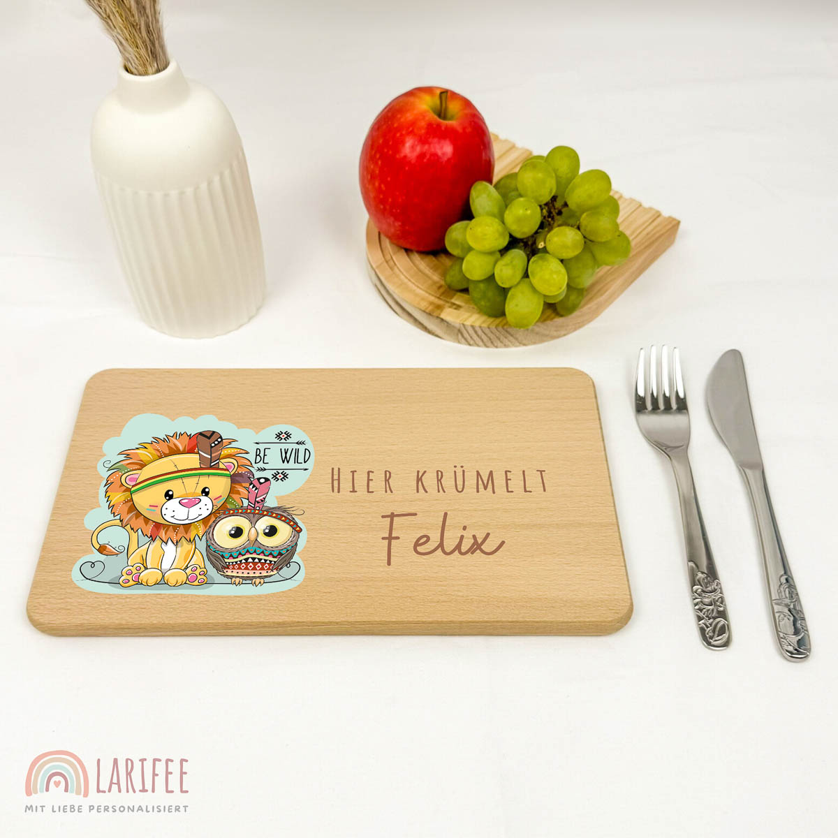 Unser liebevoll personalisiertes Frühstücksbrettchen mit Löwe & Eule lädt zum Entdecken und Staunen ein. Aus hochwertigem Buchenholz gefertigt, bedruckt mit umweltfreundlicher Tinte, kratzfest und wasserfest – für kleine Heldinnen und Helden!
