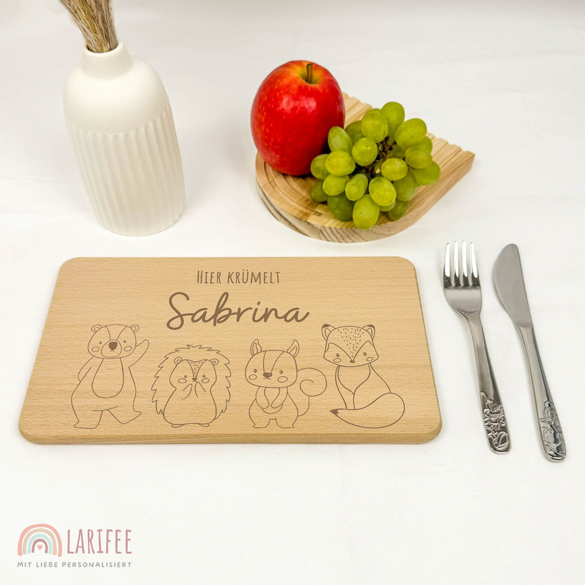 Frühstücksbrettchen Holz personalisiert – Waldtiere