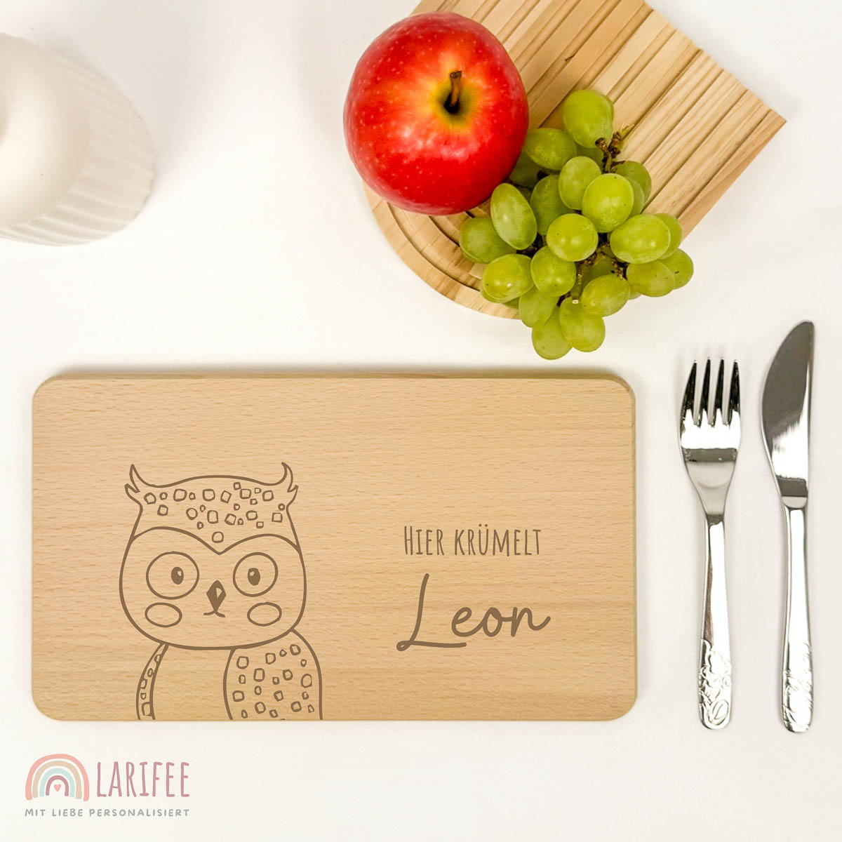 Ja. Wähle zwischen verschiedenen liebevollen Motiven wie Wal, Dino, Tiger & Eule, Rehkitz, Meerjungfrau oder Löwe & Eule. Der Name deines Kindes wird direkt auf die Flasche gedruckt.
