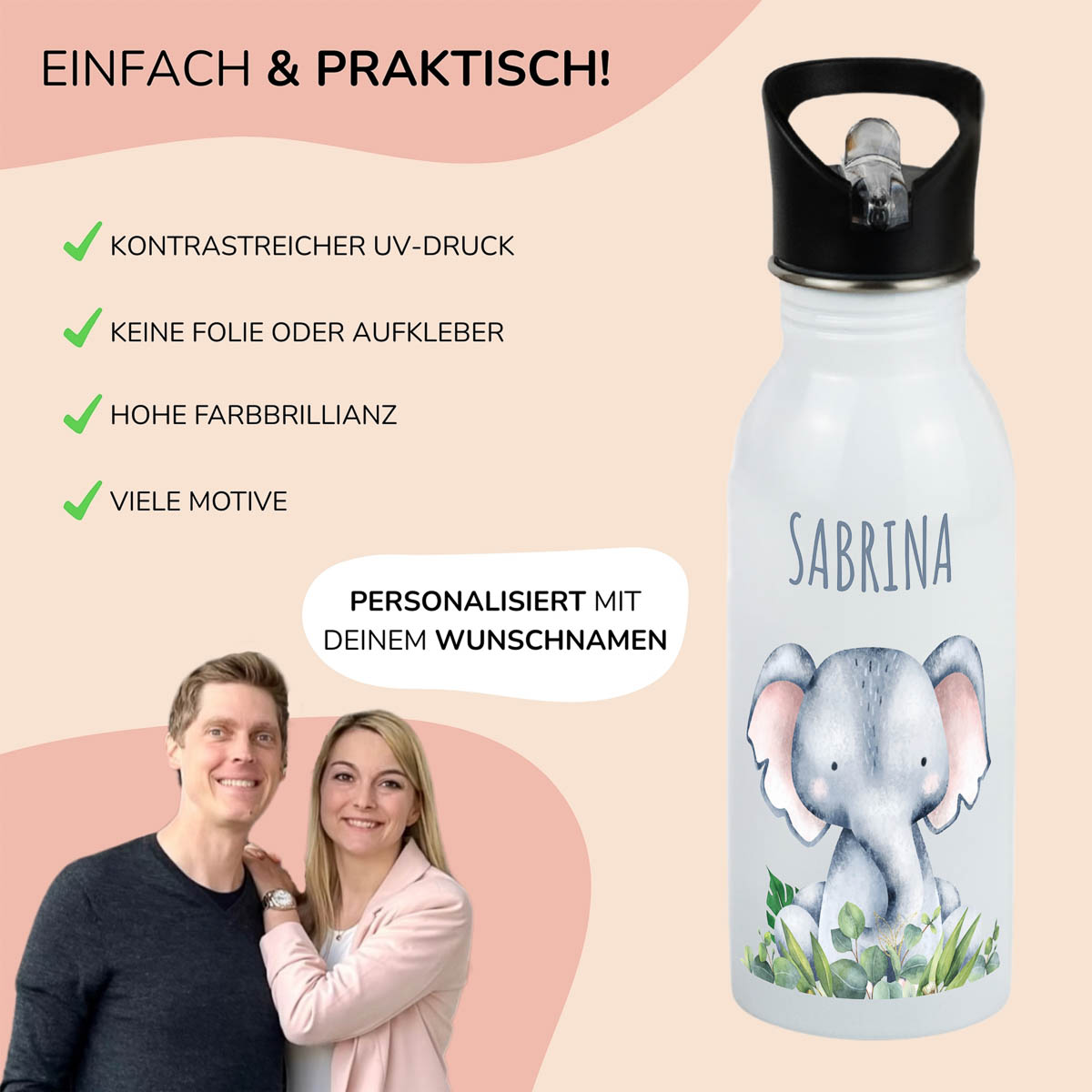 Trinkflasche, Wasserflasche personalisiert mit Namen und süßem Motiv – ein fröhlicher Alltagsbegleiter für kleine Entdecker