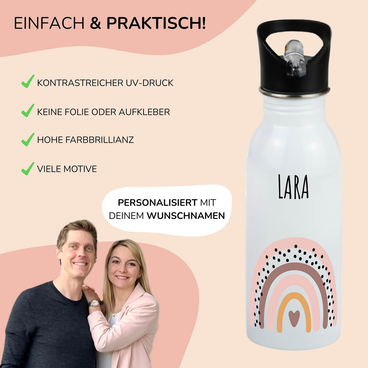 Trinkflasche, Wasserflasche personalisiert mit Namen und süßem Motiv – ein fröhlicher Alltagsbegleiter für kleine Entdecker