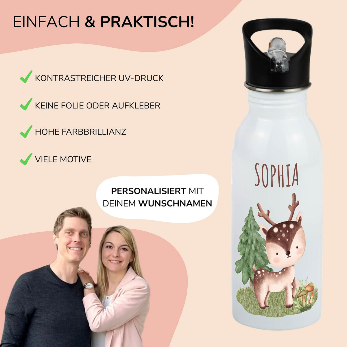 Trinkflasche Kinder personalisiert – Reh