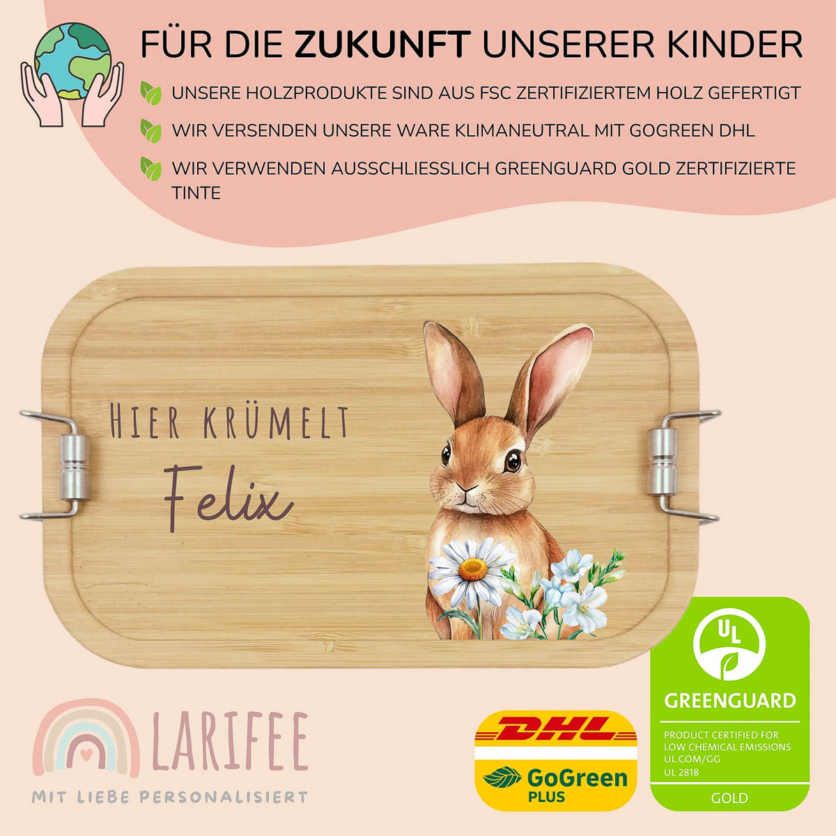 Brotdose Kinder personalisiert – Ostern Hase Hellbraun