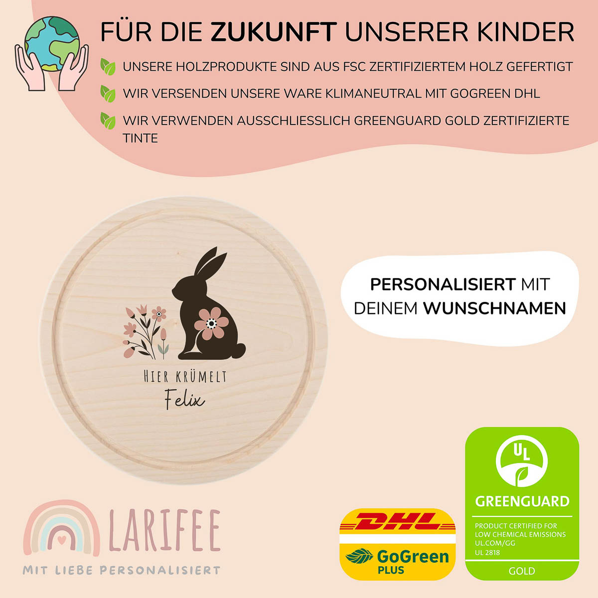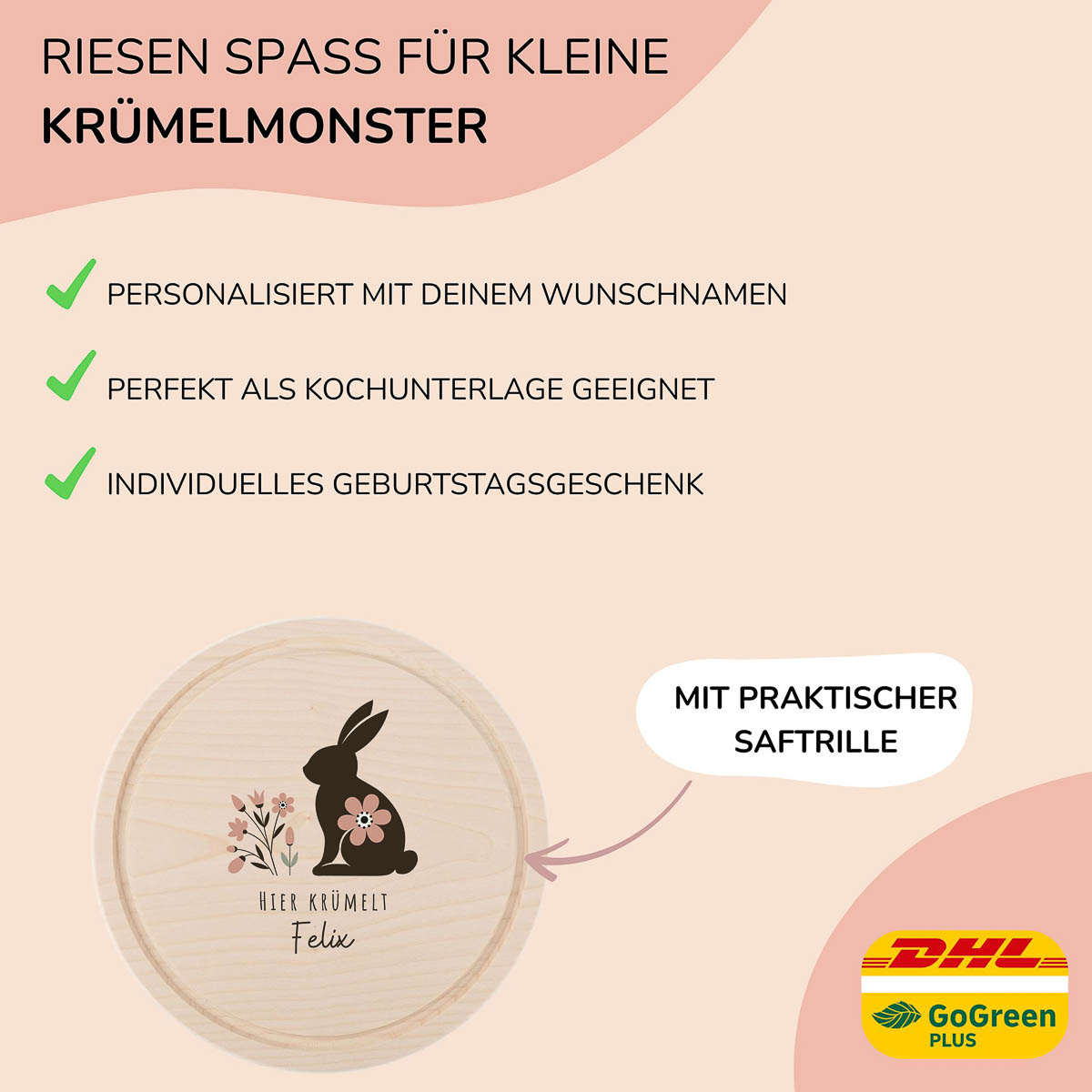 Frühstücksbrettchen Holz rund personalisiert – Ostern Boho Schwarz