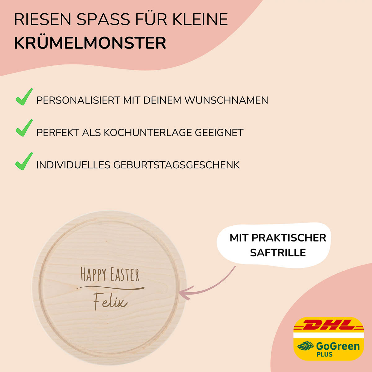 Frühstücksbrettchen Holz rund personalisiert – Happy Easter