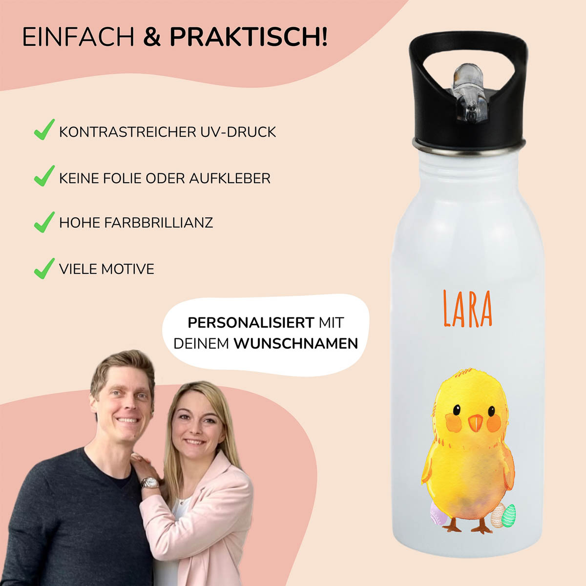 Trinkflasche Kinder personalisiert – Ostern Küken
