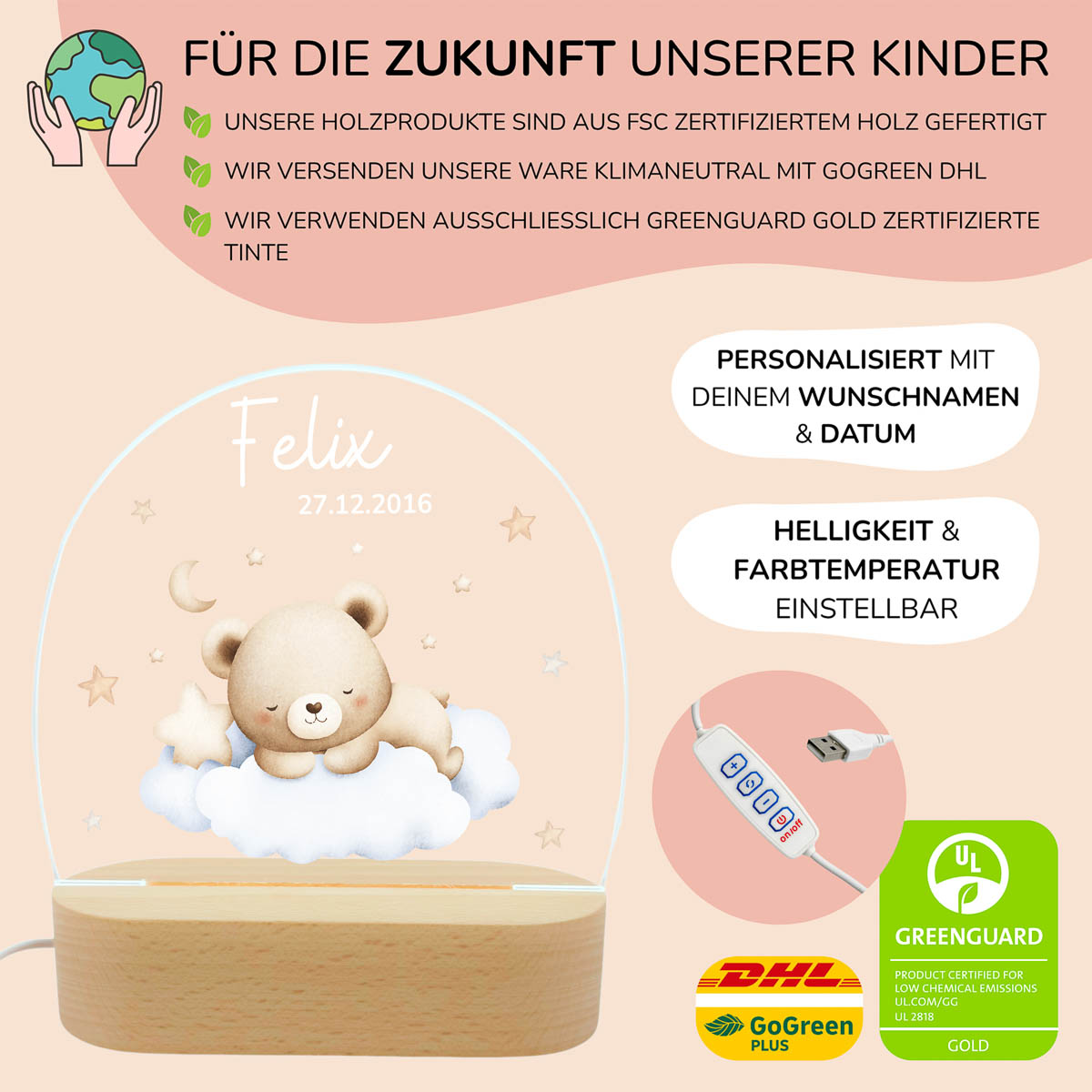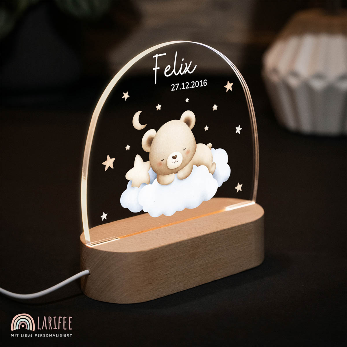 Nachtlicht personalisiert mit Name & Geburtsdatum – für liebevolle Einschlafmomente voller Geborgenheit