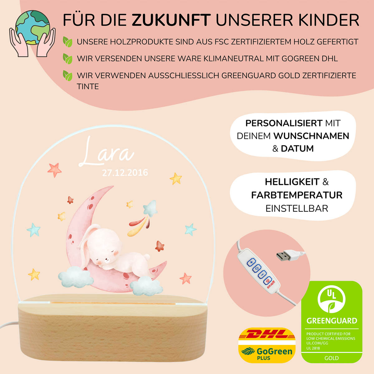 Nachtlicht personalisiert mit Name & Geburtsdatum – für liebevolle Einschlafmomente voller Geborgenheit