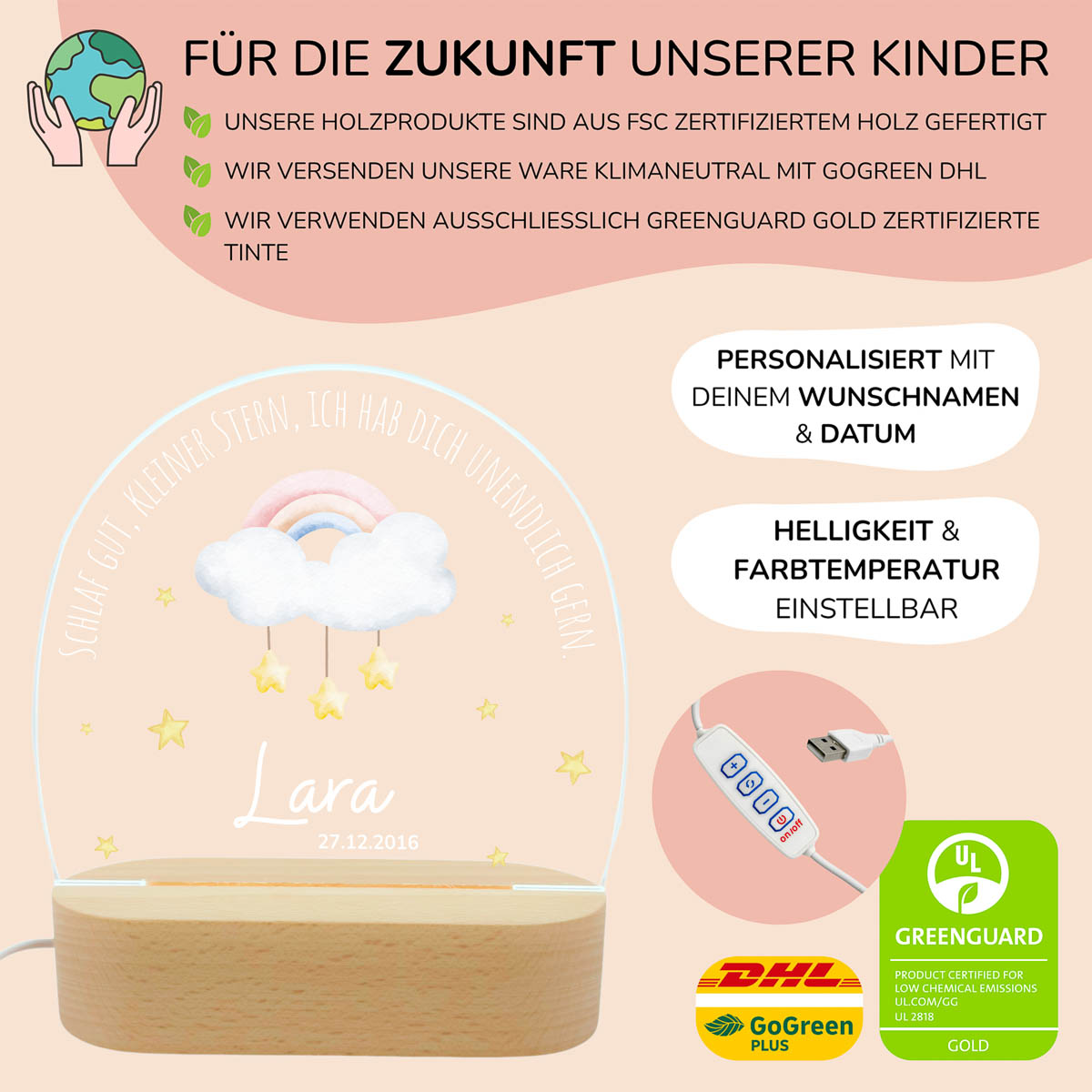 Nachtlicht Kinder & Baby personalisiert – Spruch 2 Regenbogen