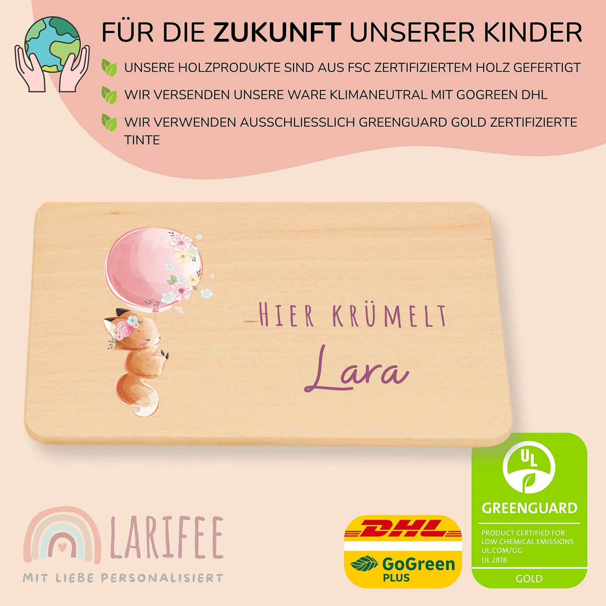 Frühstücksbrettchen Holz personalisiert – Fuchs mit Luftballon