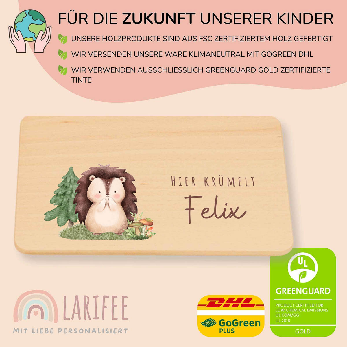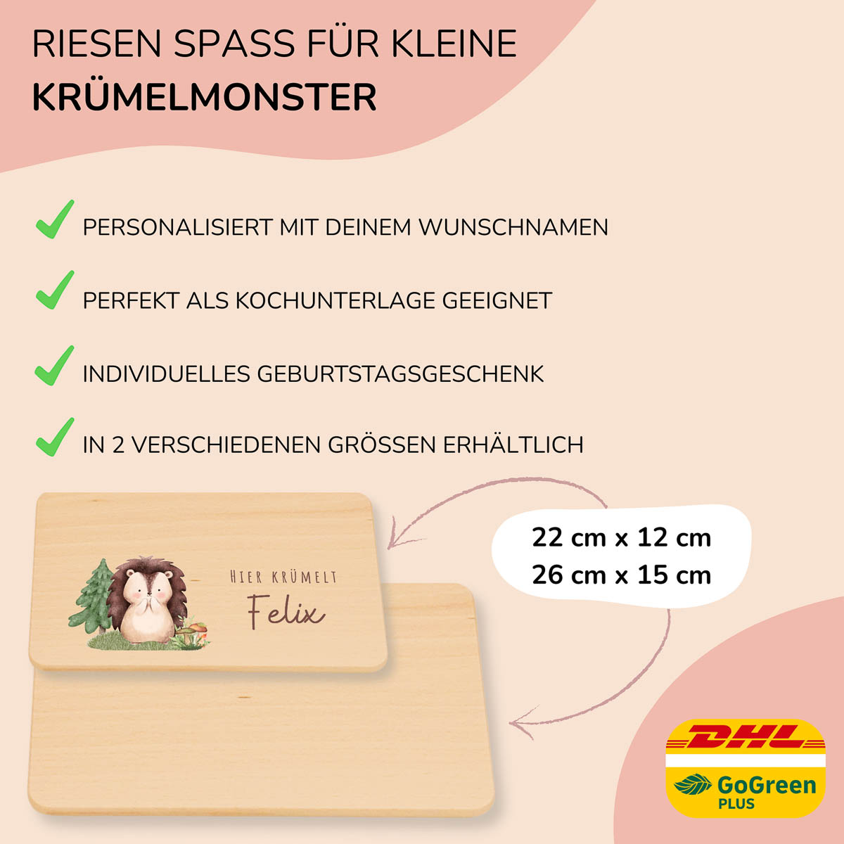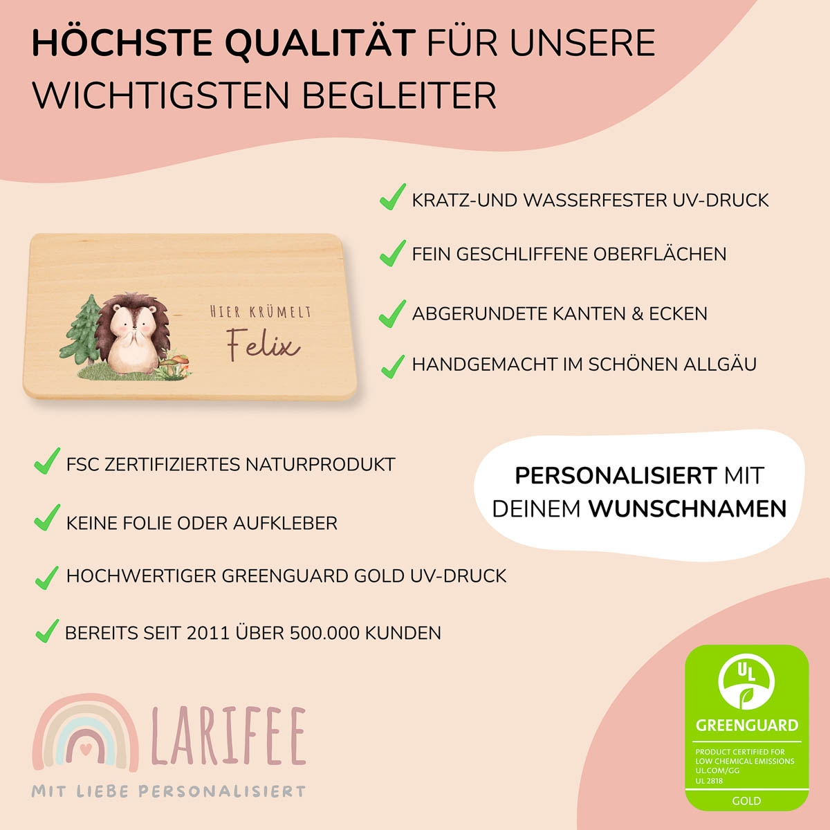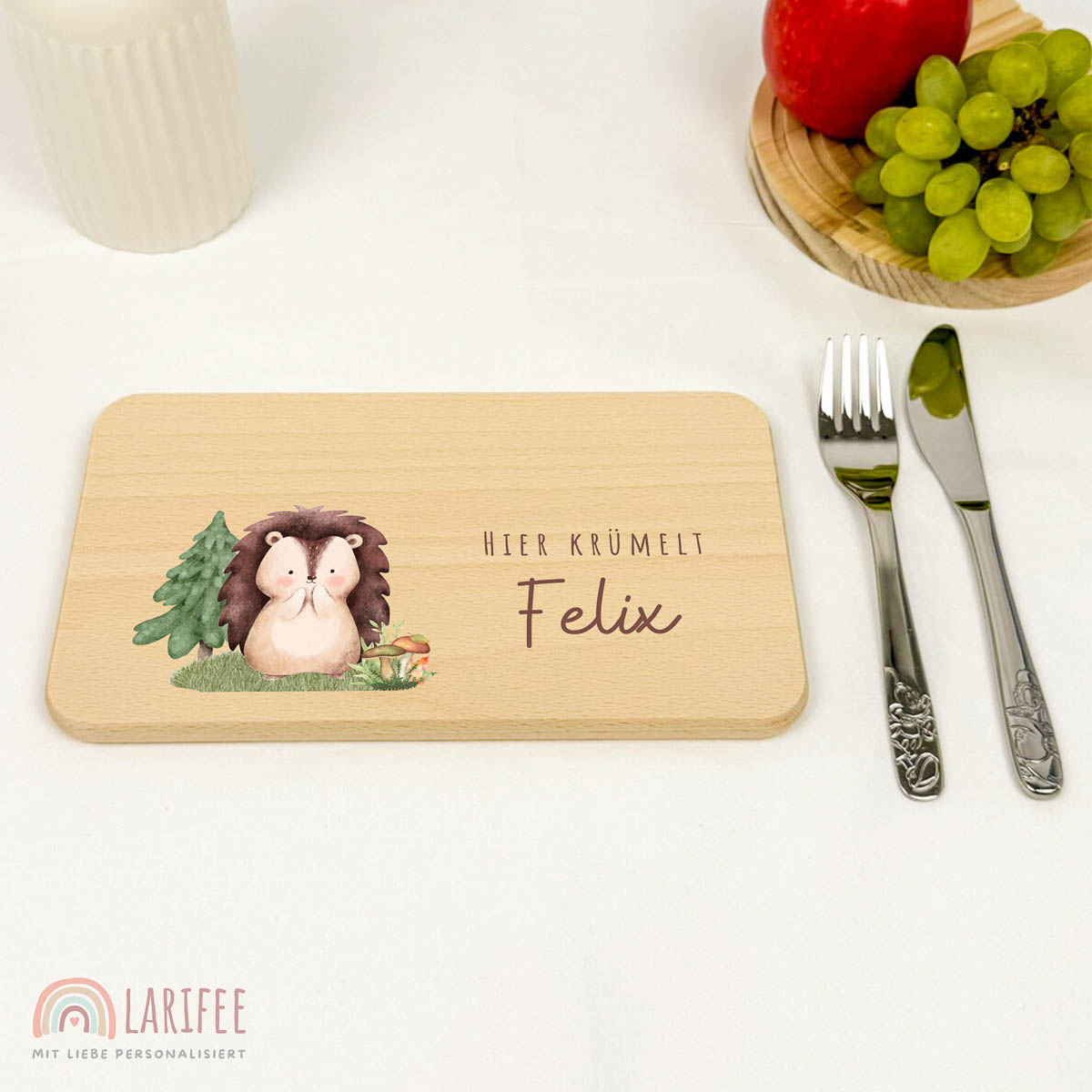 Mit dem niedlichen Igel wird jede Mahlzeit zu einem besonderen Moment. Das personalisierte Frühstücksbrettchen aus Buchenholz ist mit umweltfreundlicher Tinte bedruckt, kratzfest und wasserfest – perfekt für den Alltag!