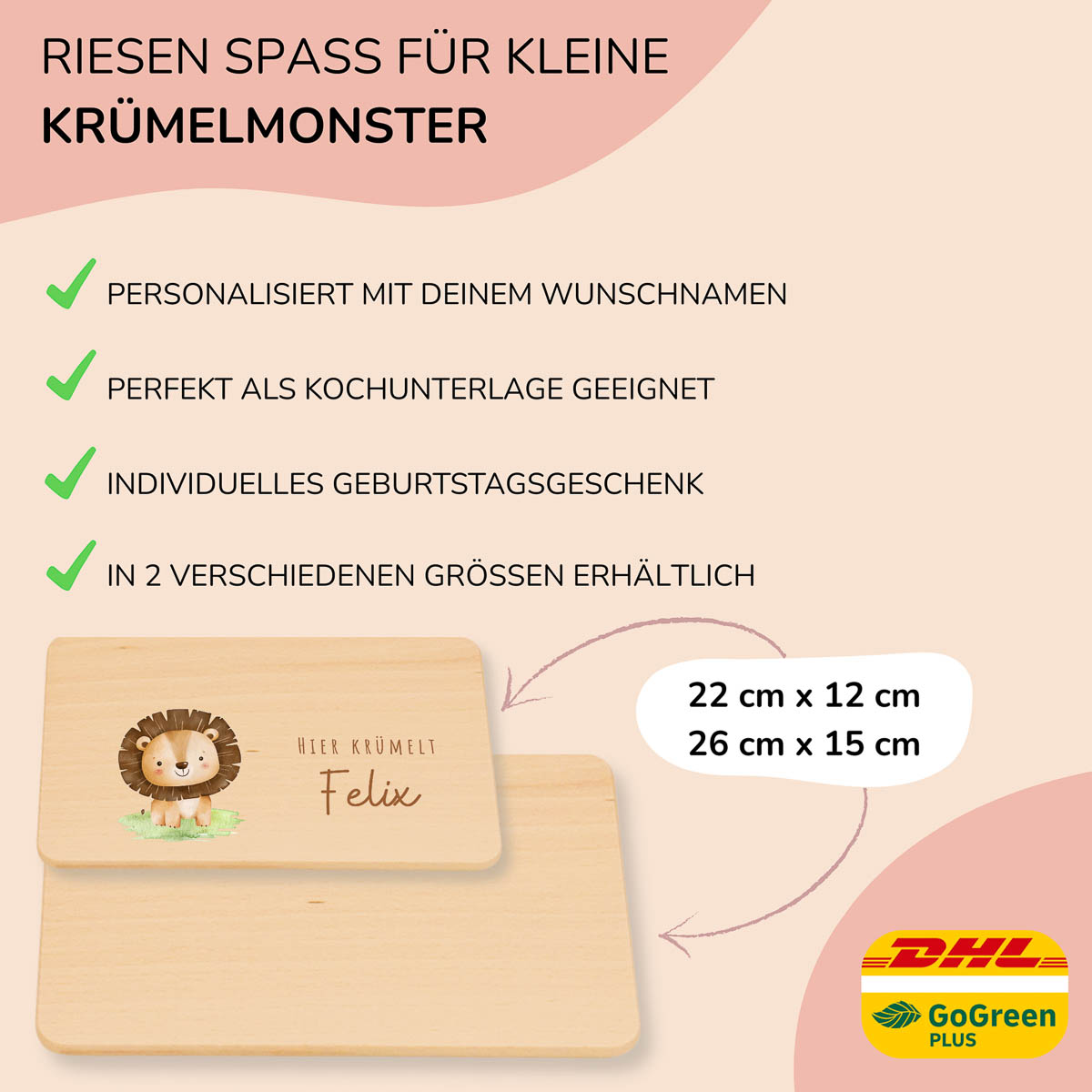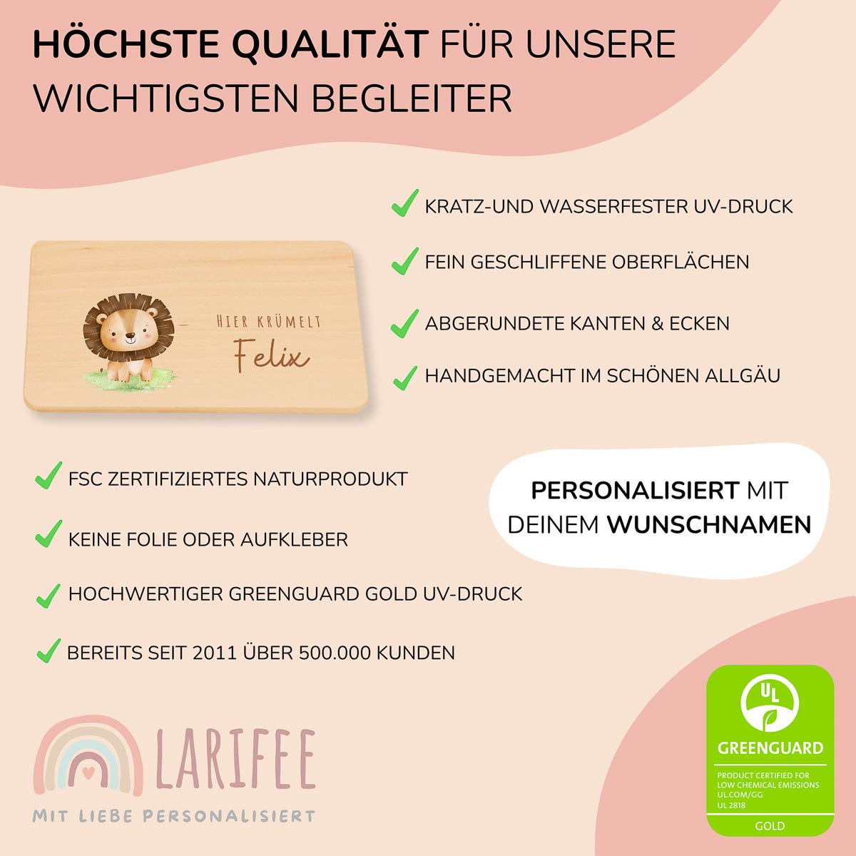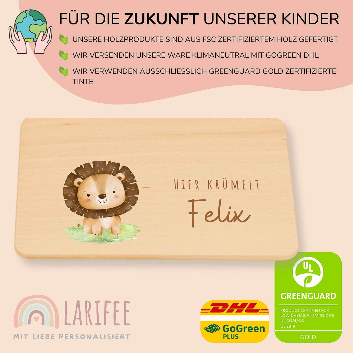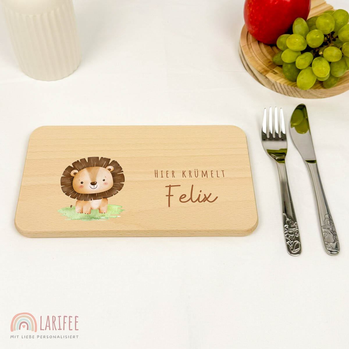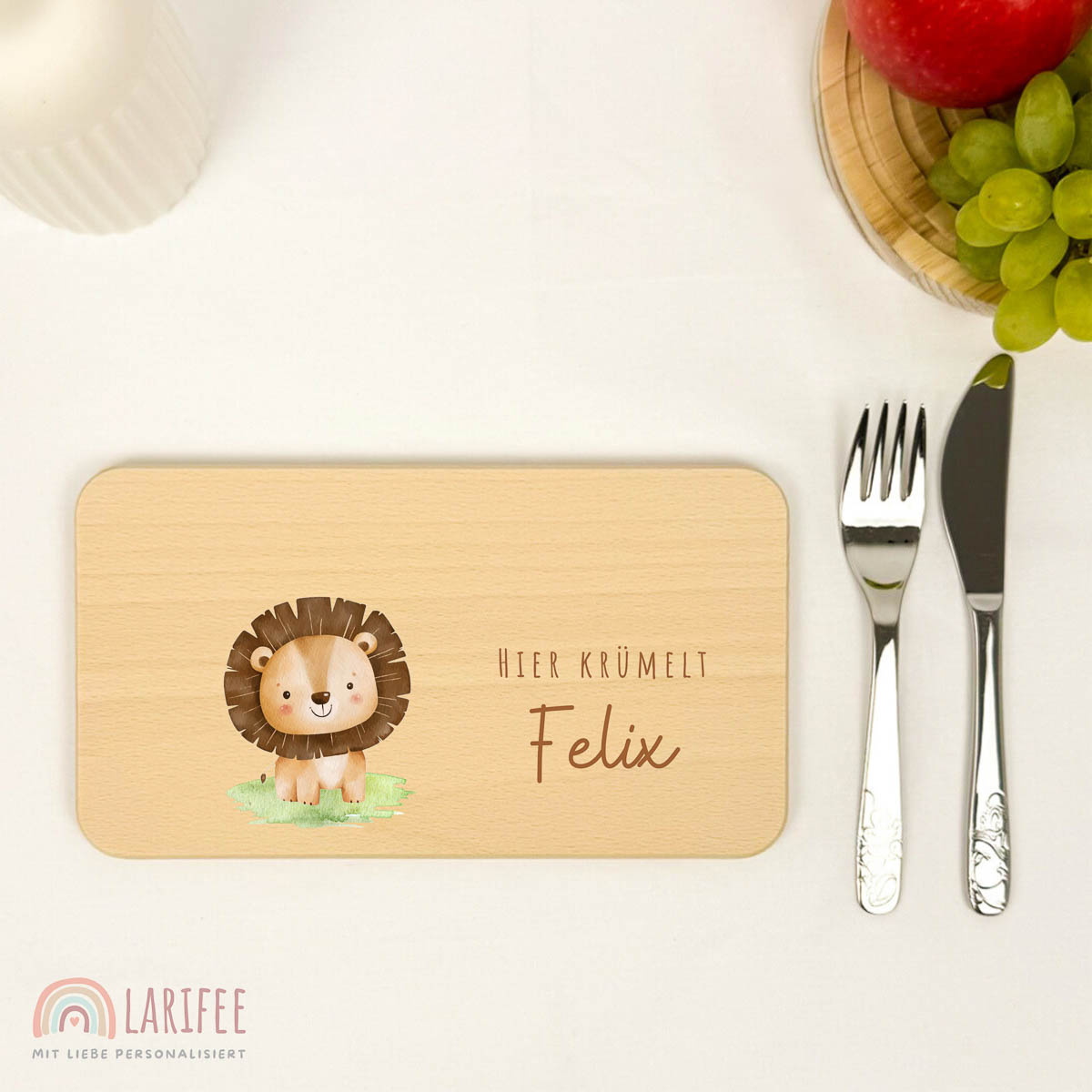 Frühstücksbrettchen Holz personalisiert – Löwe