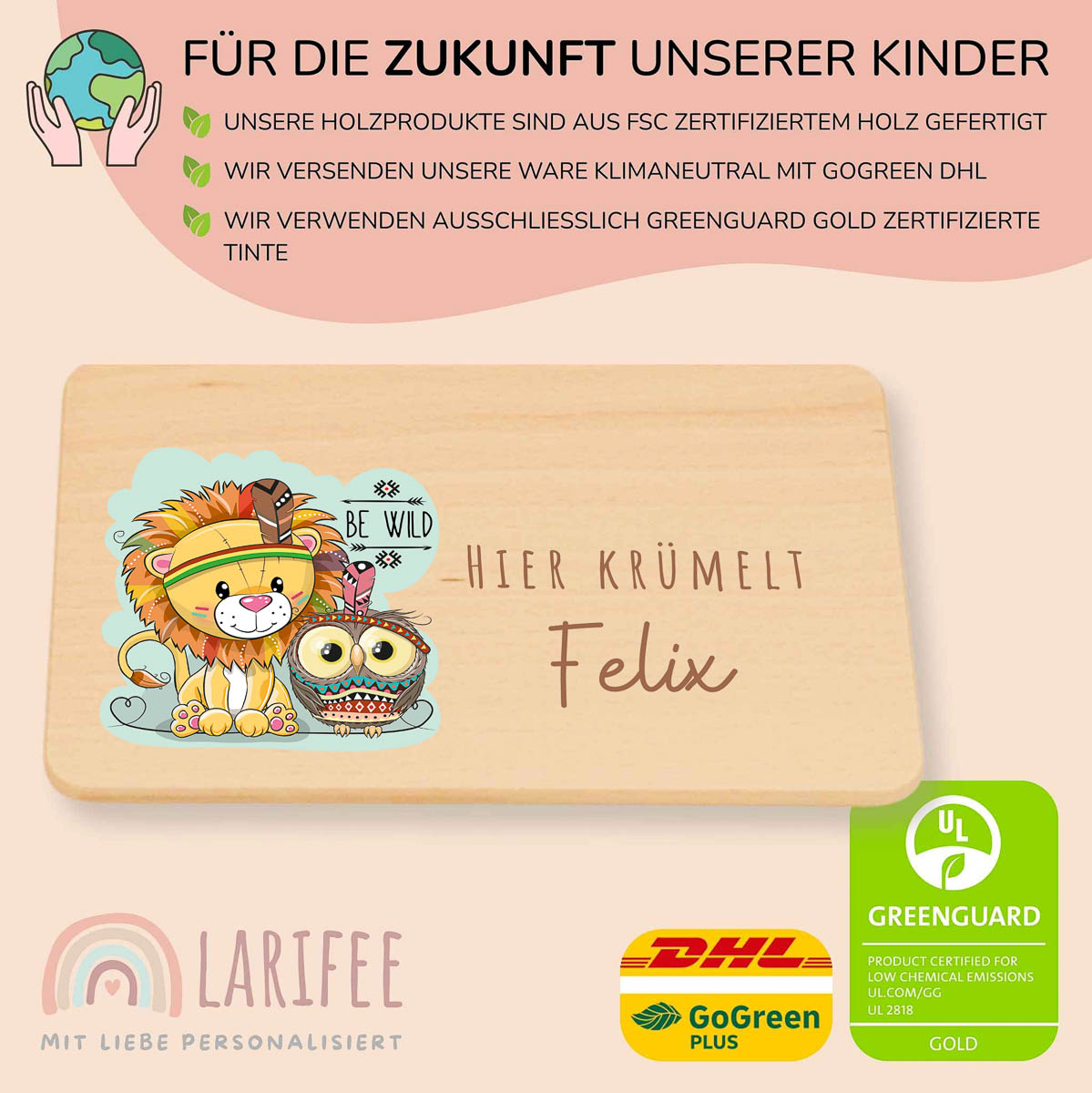 Unser liebevoll personalisiertes Frühstücksbrettchen mit Löwe & Eule lädt zum Entdecken und Staunen ein. Aus hochwertigem Buchenholz gefertigt, bedruckt mit umweltfreundlicher Tinte, kratzfest und wasserfest – für kleine Heldinnen und Helden!