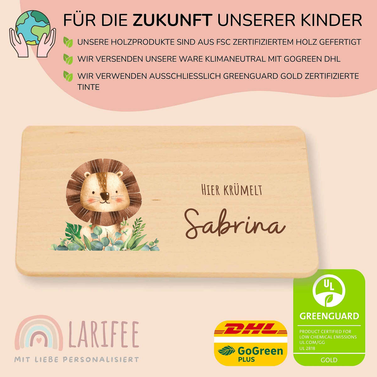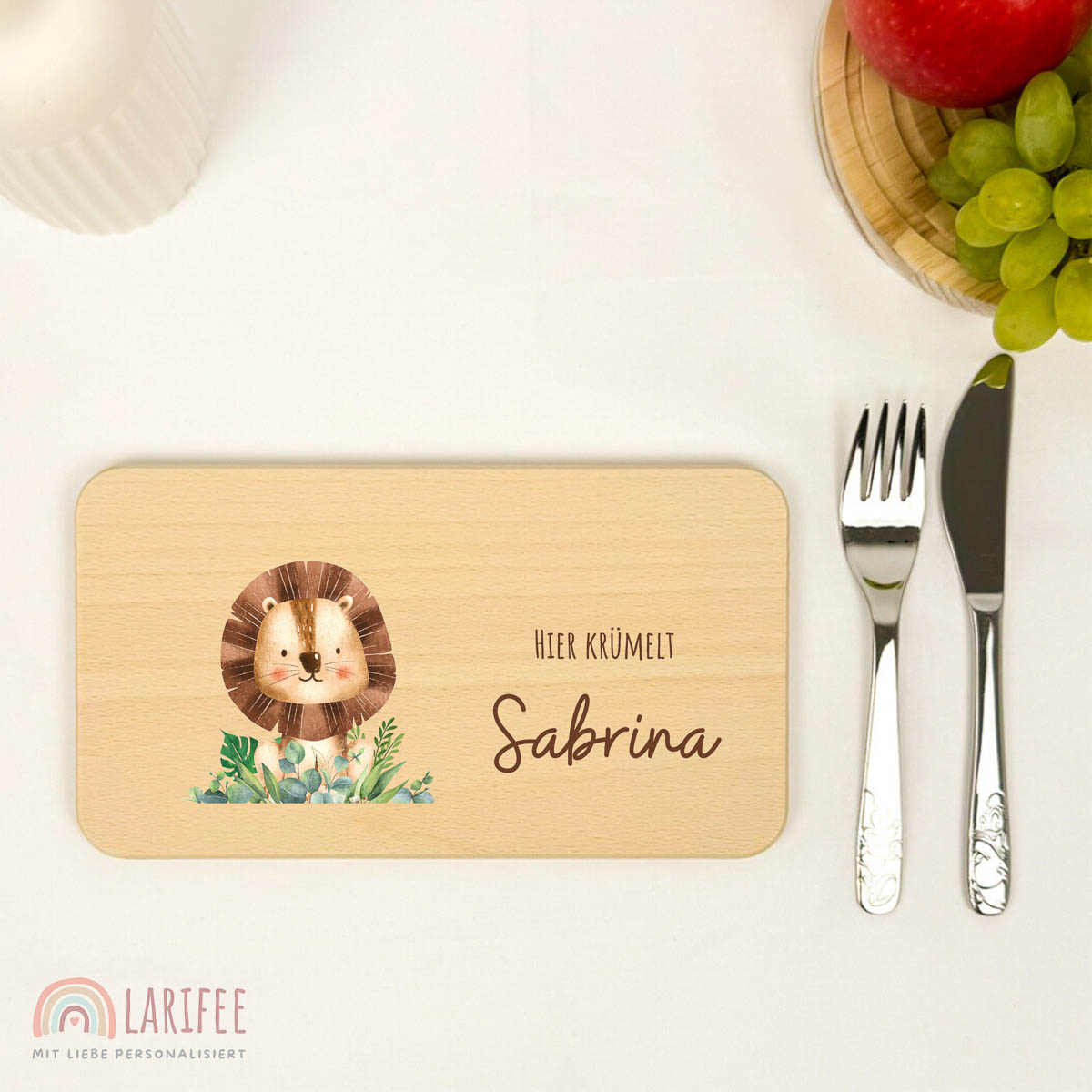 Unser personalisiertes Frühstücksbrettchen mit süßem Löwen-Motiv macht jede Mahlzeit zum Abenteuer. Gefertigt aus hochwertigem Buchenholz, bedruckt mit umweltfreundlicher Tinte, sowie kratzfest und wasserfest – ideal für kleine Entdecker!