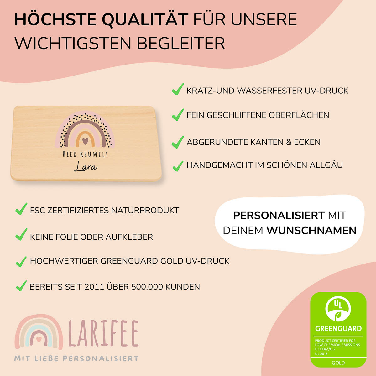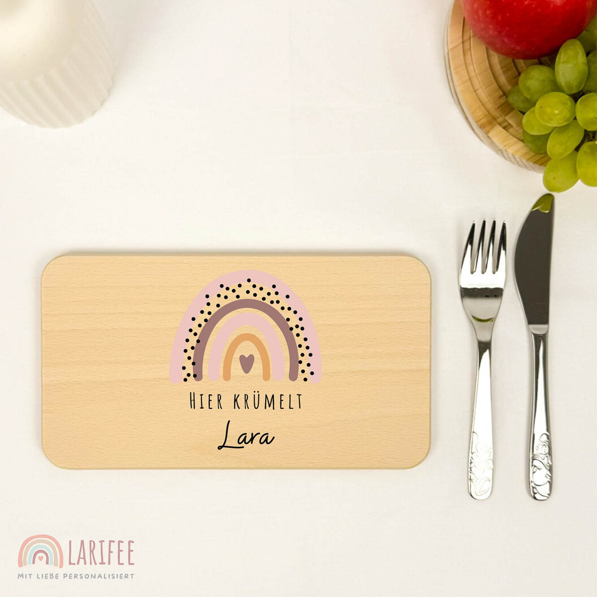 Frühstücksbrettchen Holz personalisiert – Regenbogen