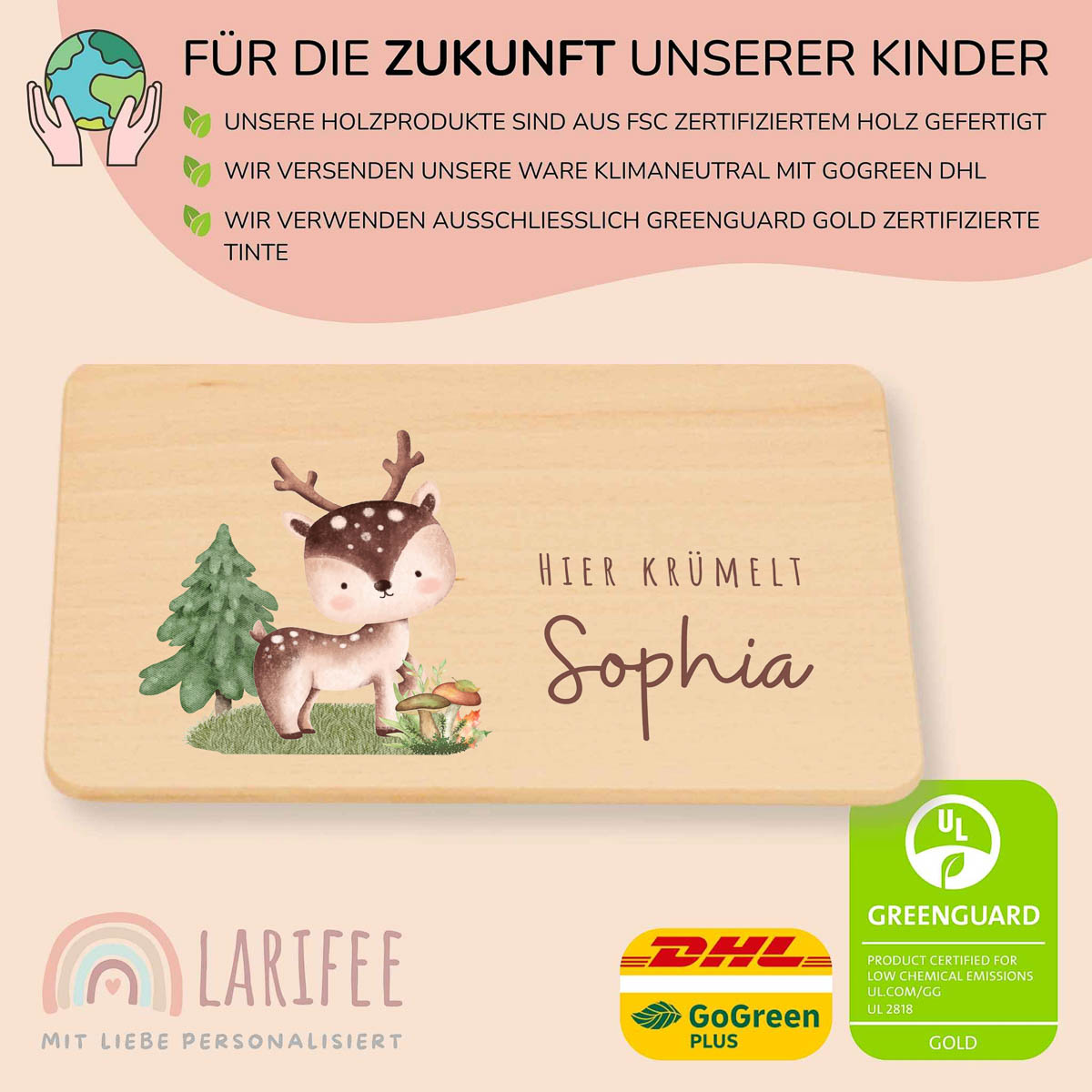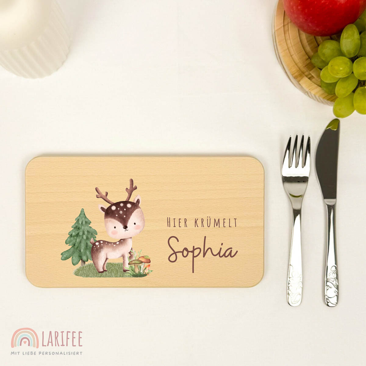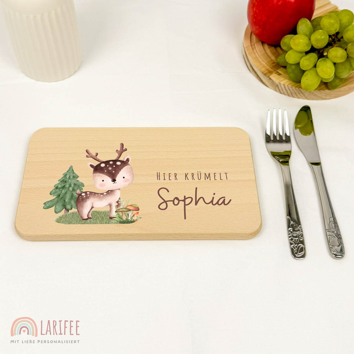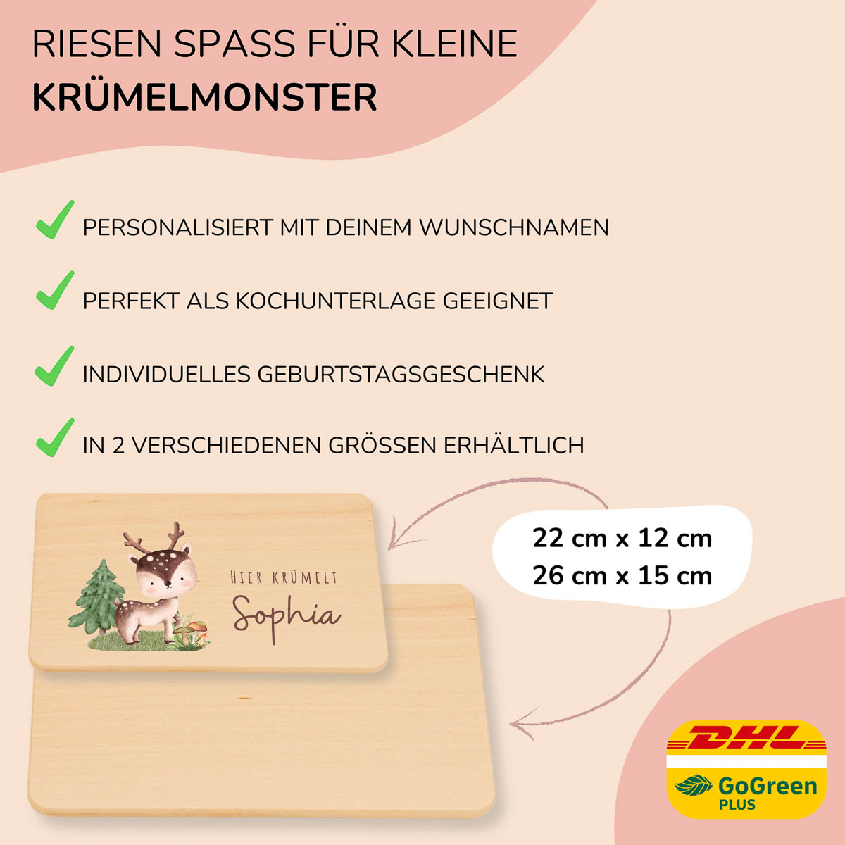 Das sanfte Reh-Motiv macht jede Mahlzeit noch schöner. Hochwertiges Buchenholz, nachhaltiger Druck und eine kratzfeste sowie wasserfeste Oberfläche machen das personalisierte Brettchen zum langlebigen Begleiter.