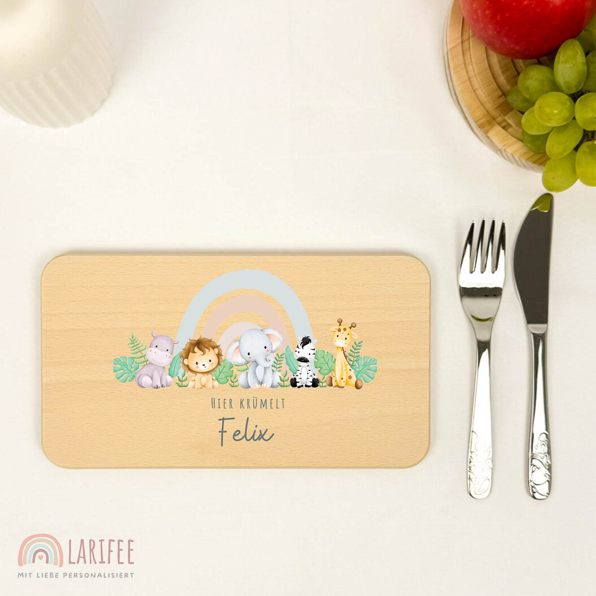 Frühstücksbrettchen Holz personalisiert – Safari Tiere