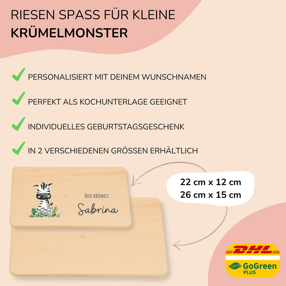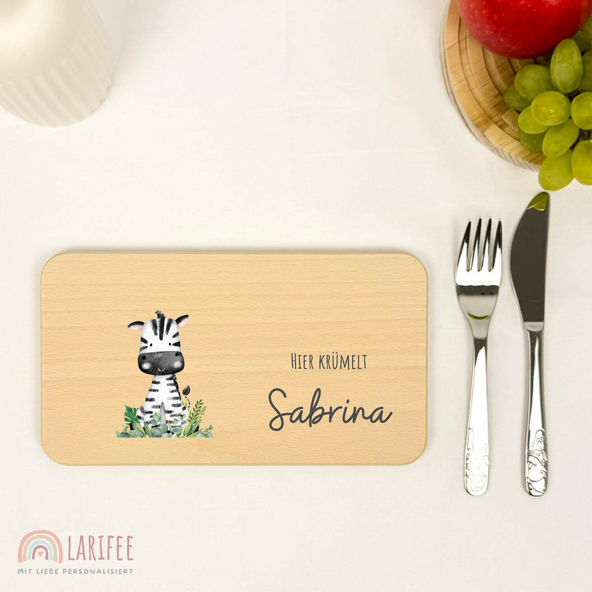Das verspielte Zebra-Motiv macht jede Mahlzeit zu etwas Besonderem! Unser personalisiertes Frühstücksbrettchen aus Buchenholz überzeugt mit nachhaltigem Druck, ist kratzfest, wasserfest und ideal für den Alltag.