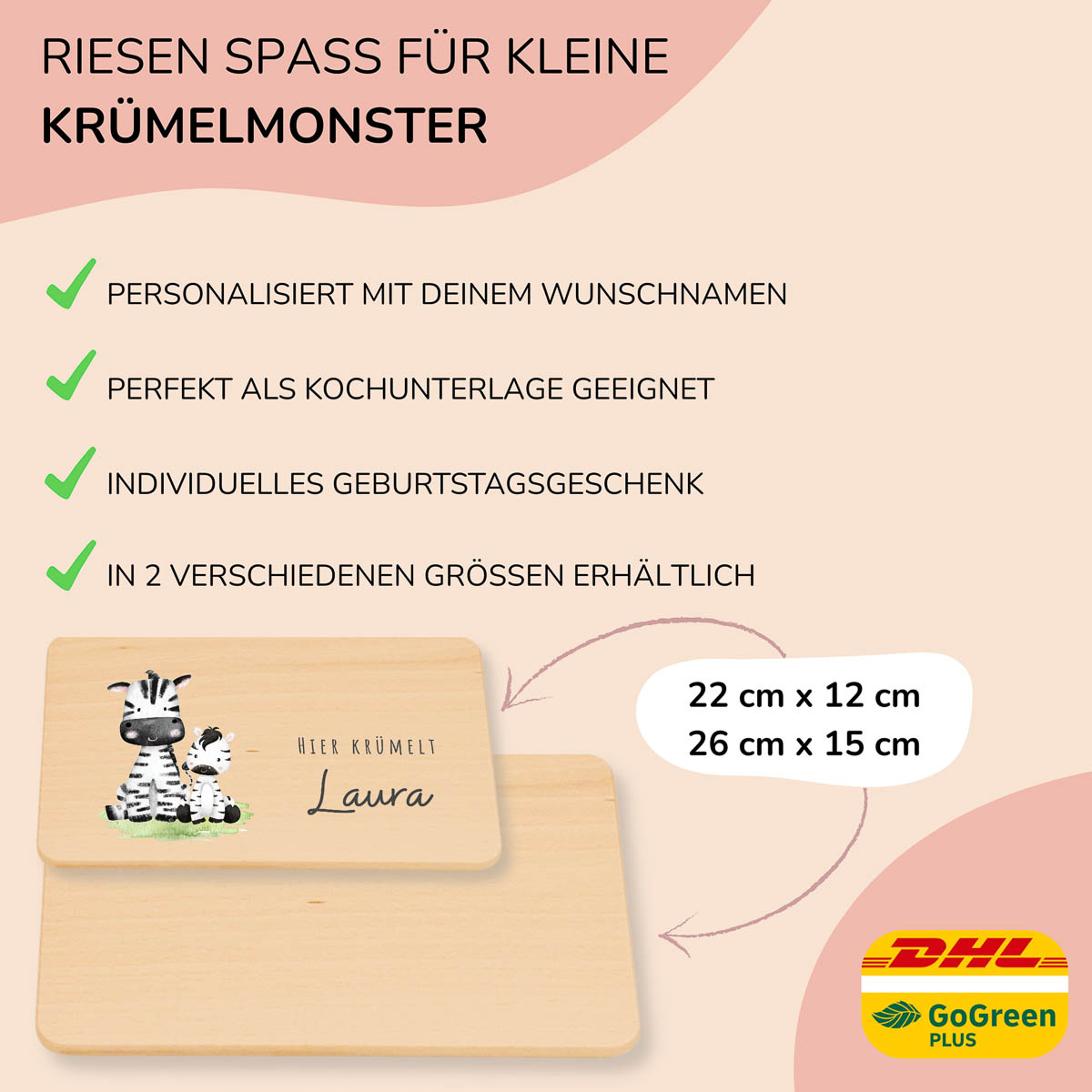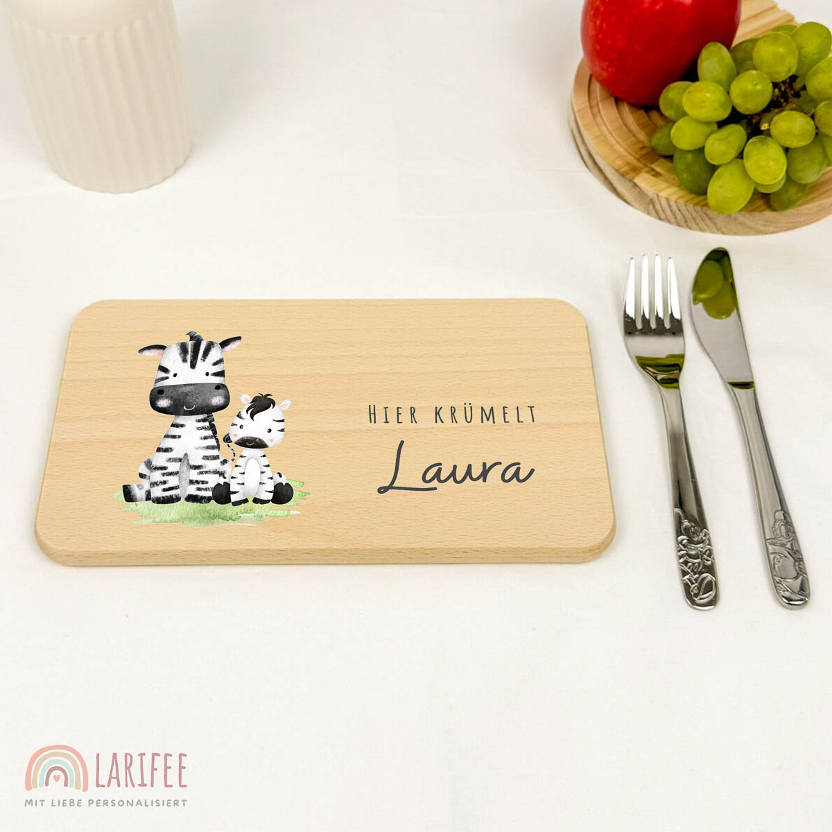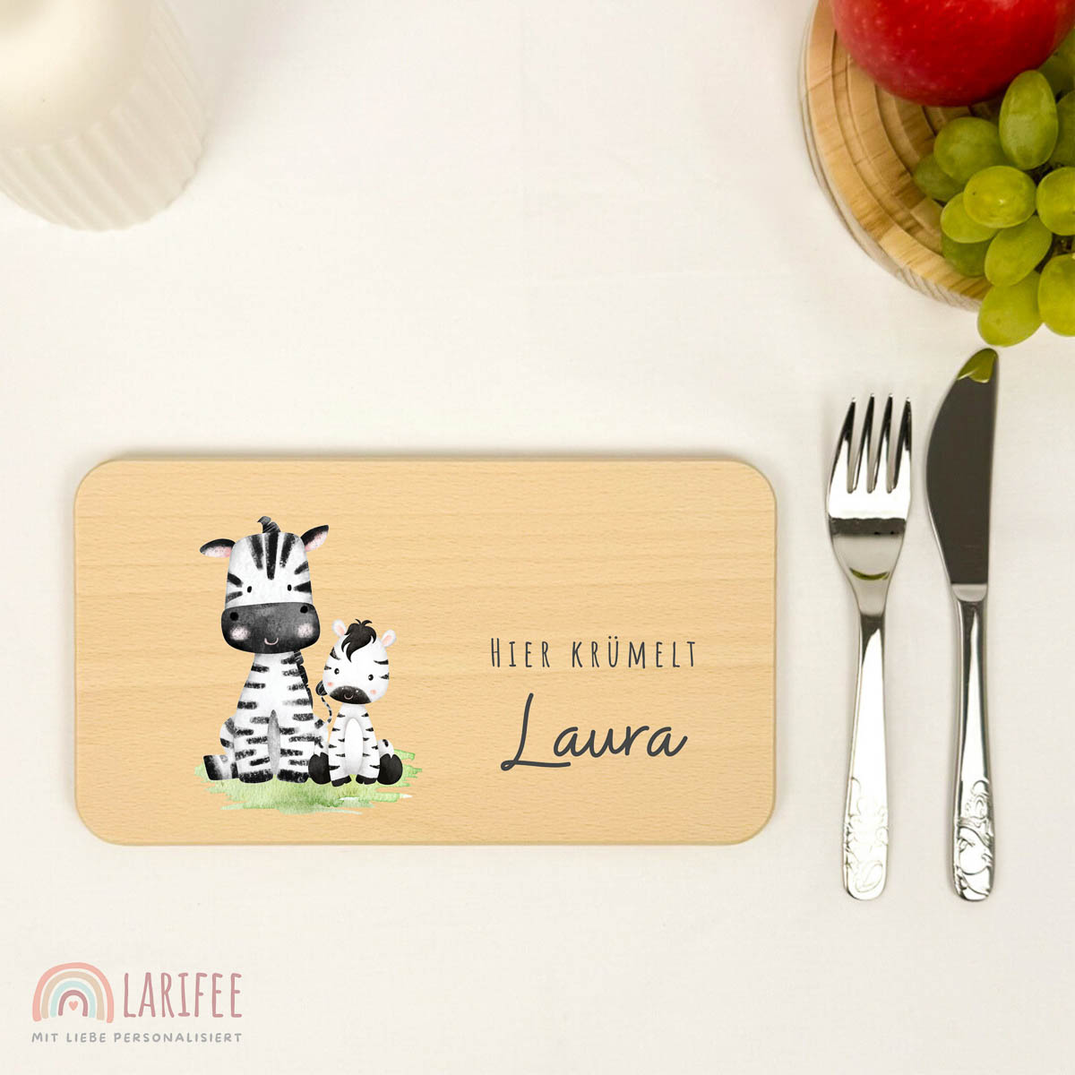 Frühstücksbrettchen Holz personalisiert – Zebras