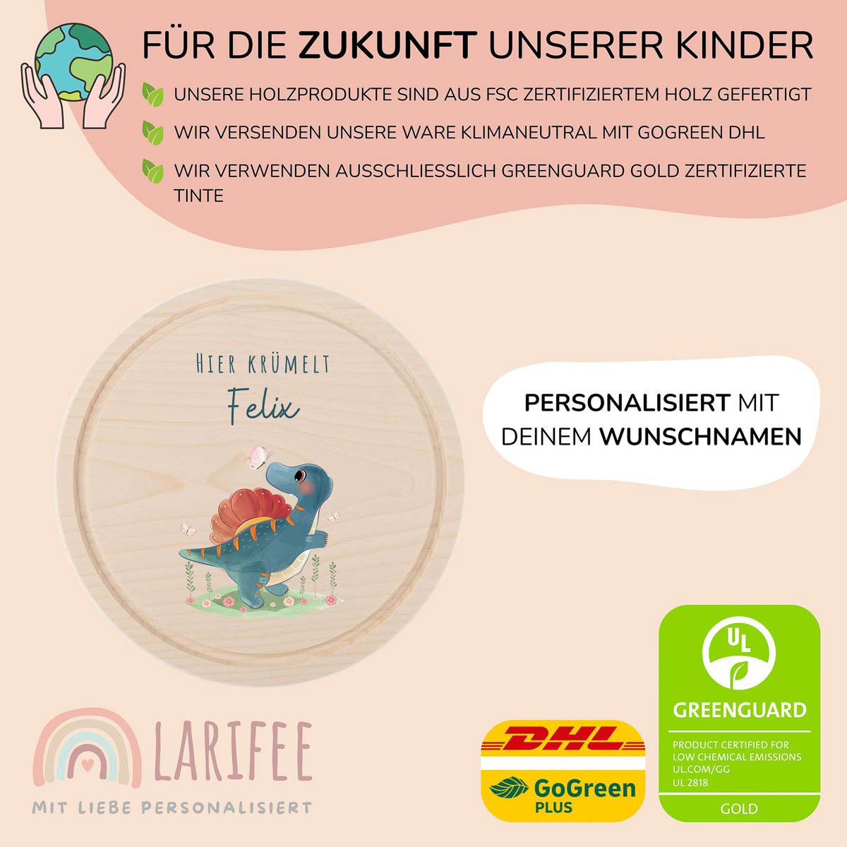 Frühstücksbrettchen Holz rund personalisiert – Dino