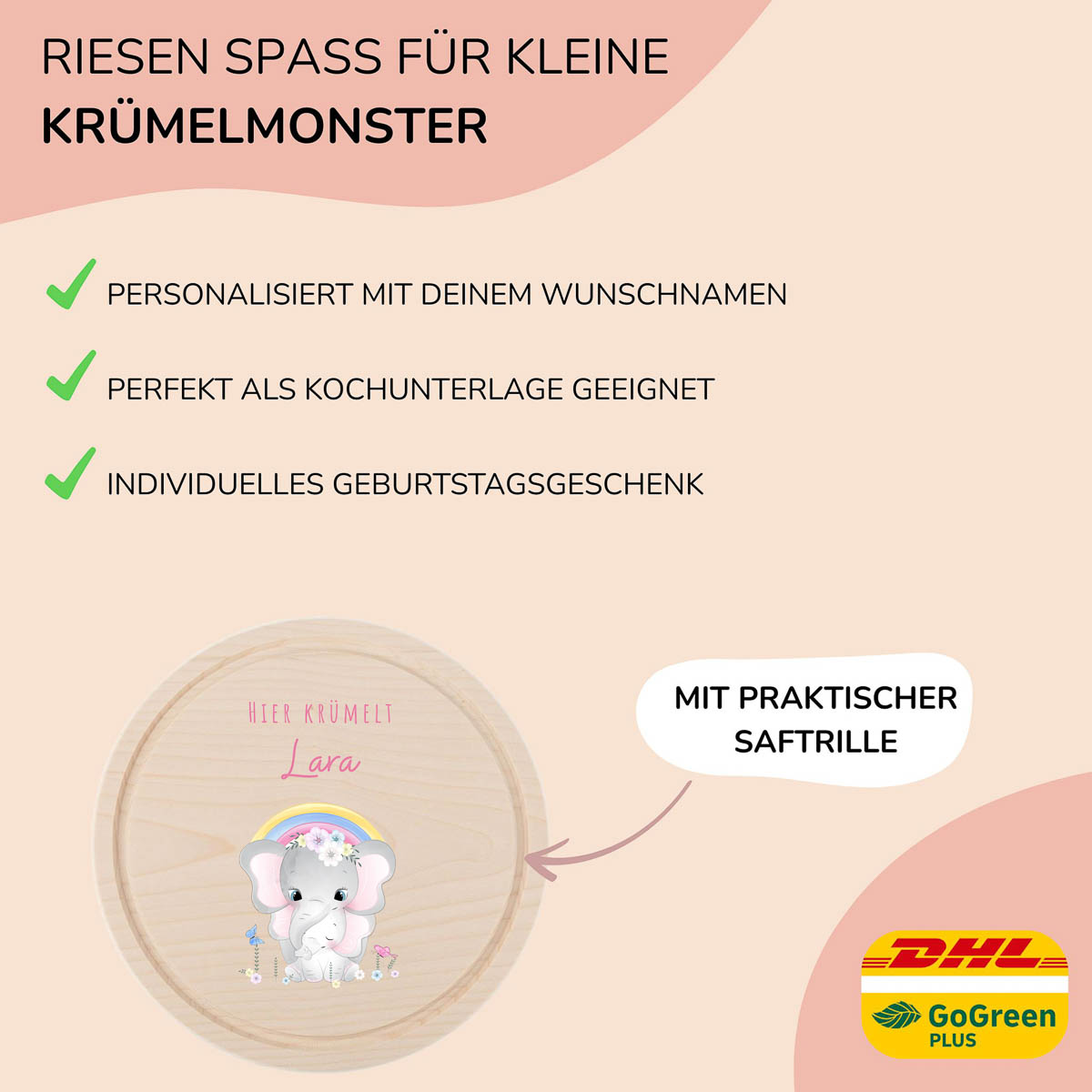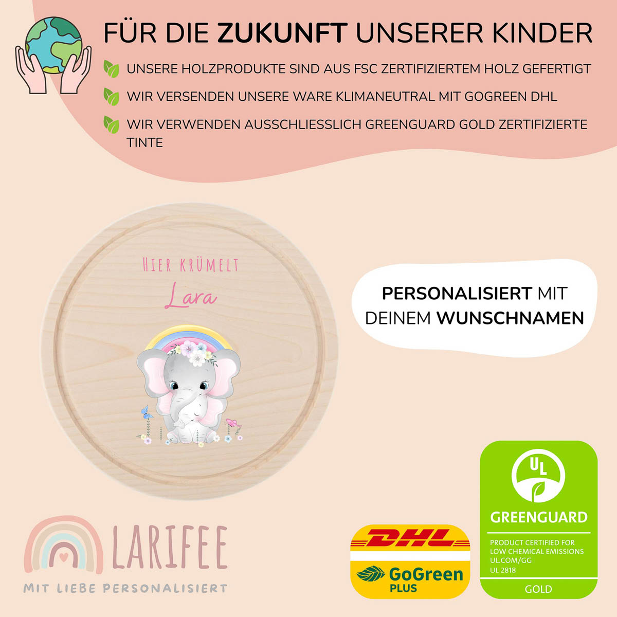 Frühstücksbrettchen Holz rund personalisiert – Elefanten