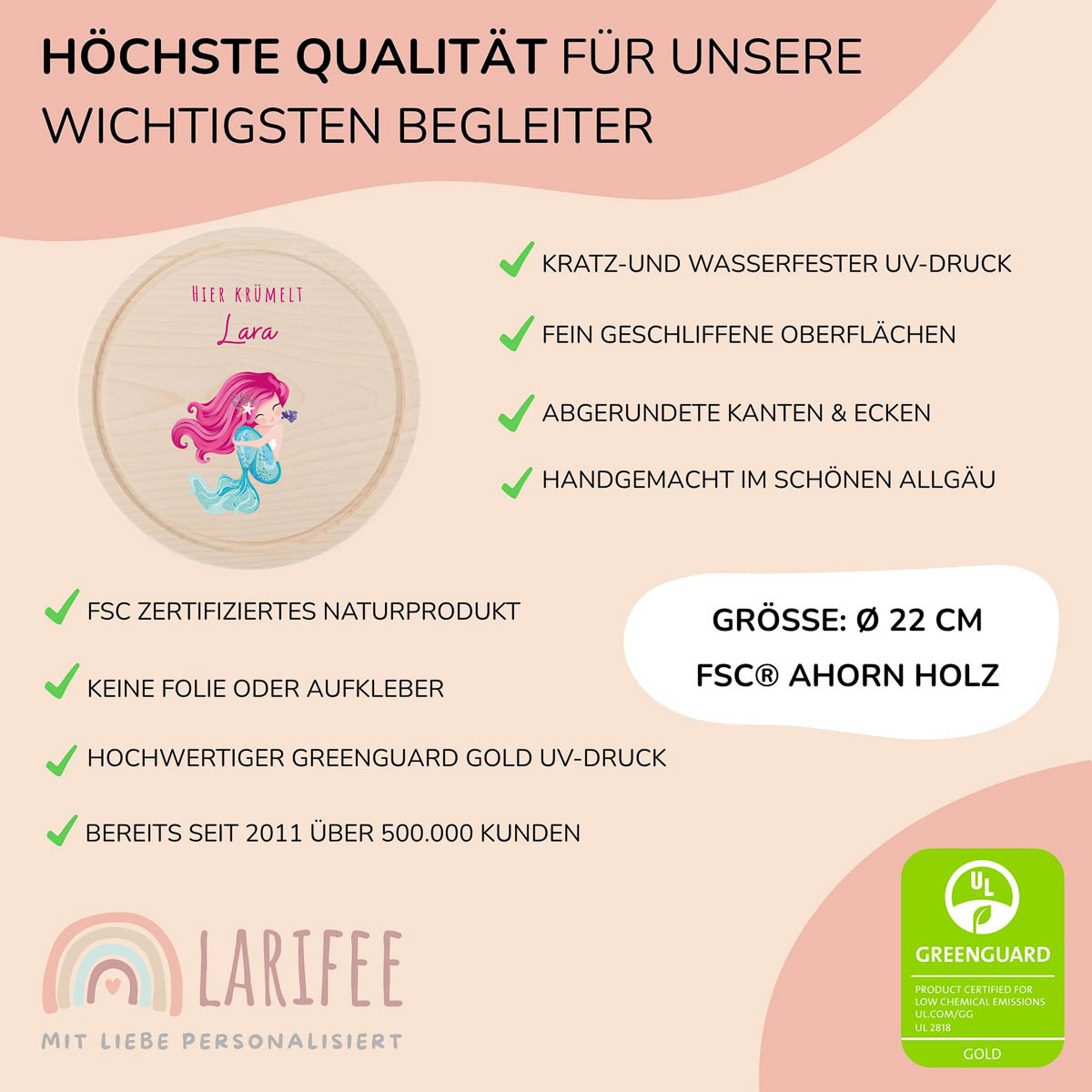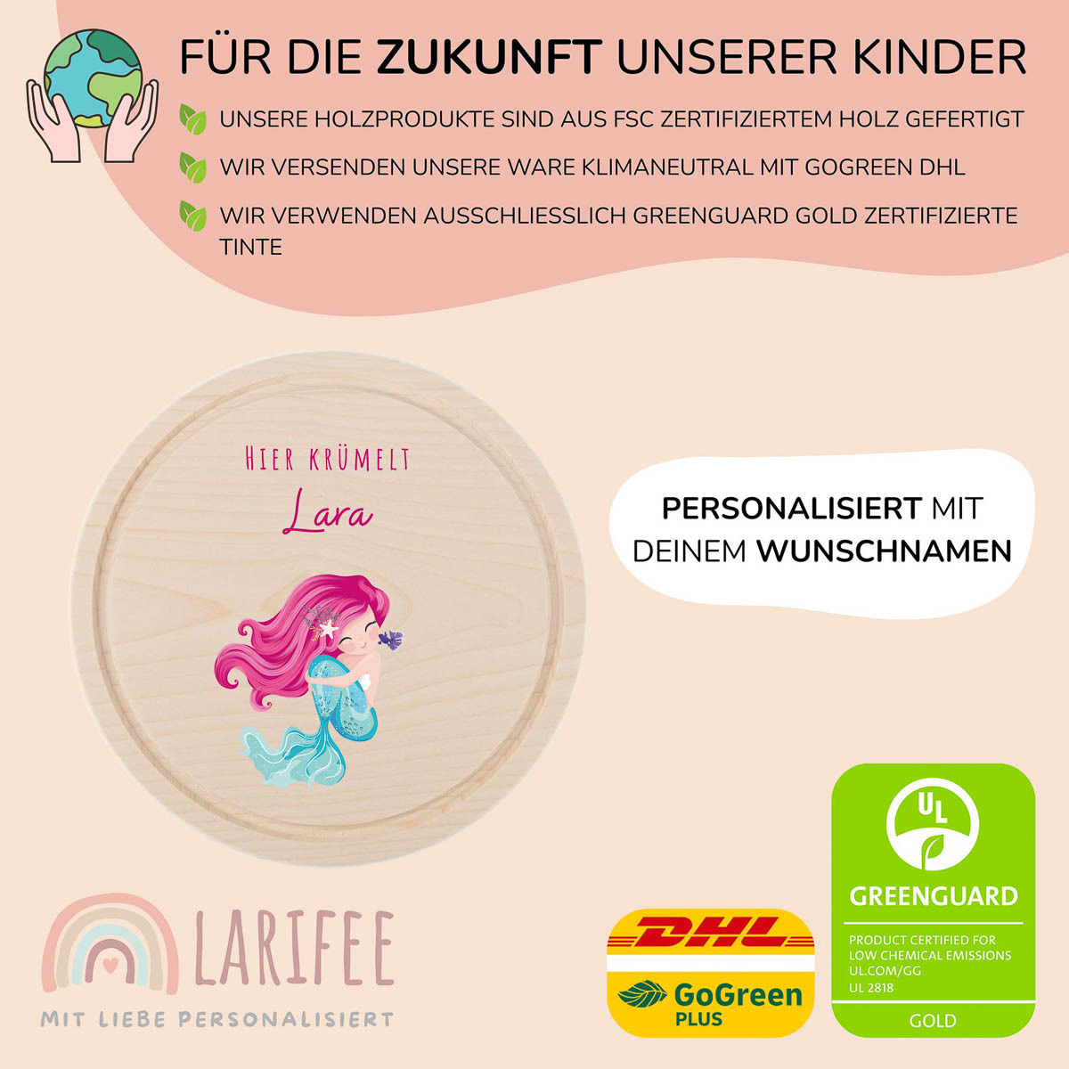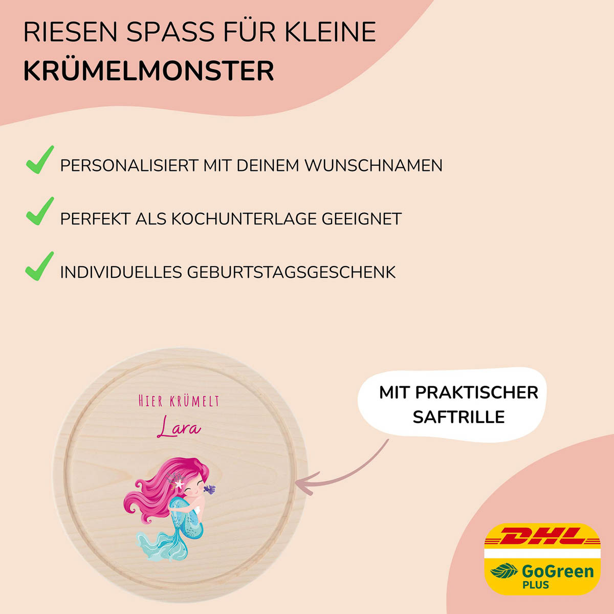 Frühstücksbrettchen Holz rund personalisiert – Meerjungfrau