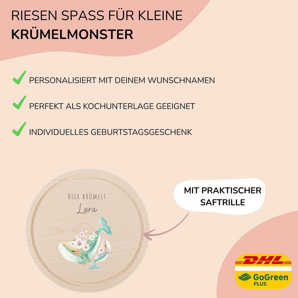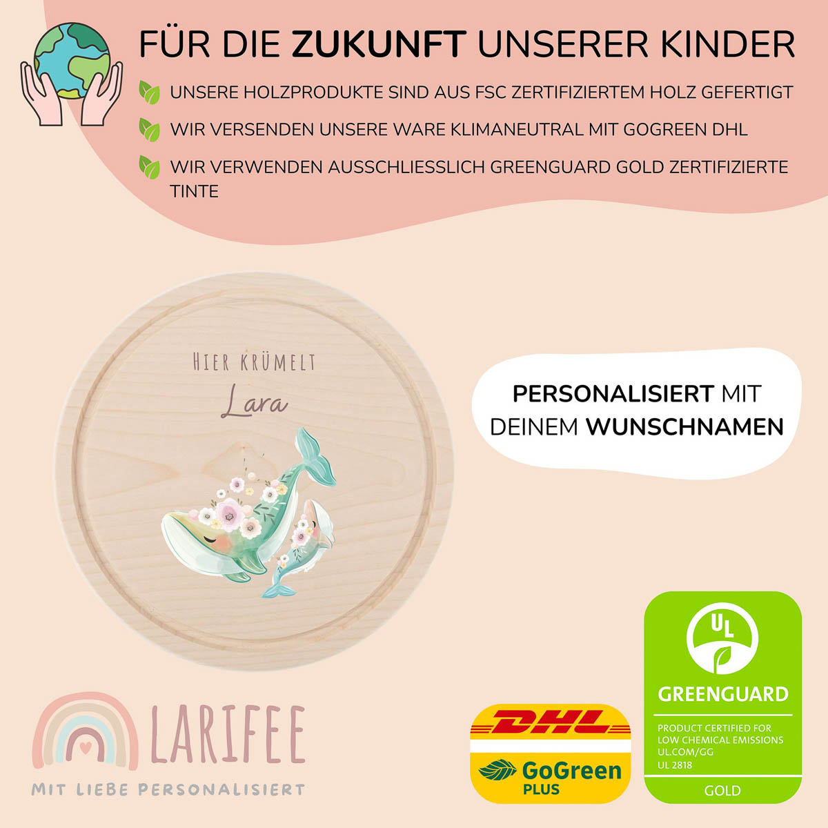 Frühstücksbrettchen Holz rund personalisiert – Wale