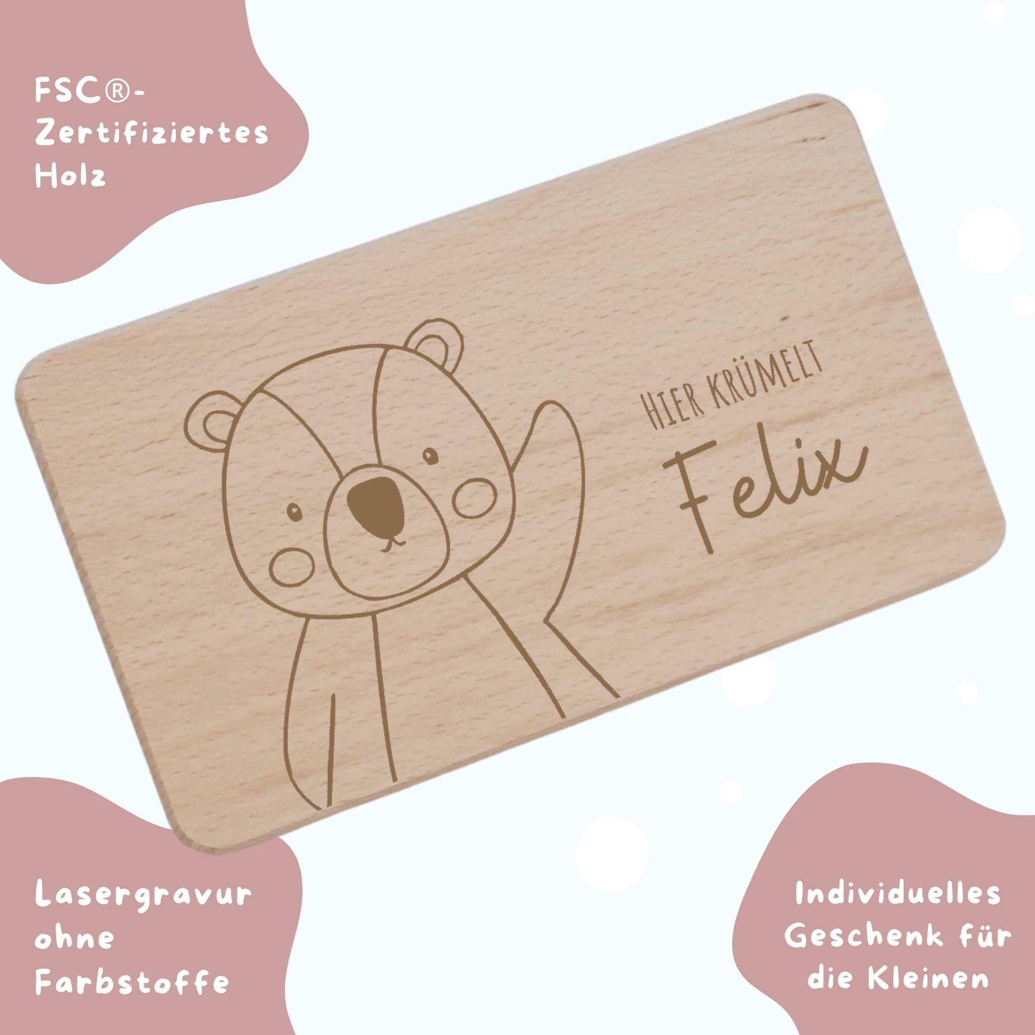 Unser personalisiertes Holzbrettchen mit süßem Löwen-Motiv macht jede Mahlzeit zum Abenteuer. Gefertigt aus hochwertigem Buchenholz, bedruckt mit umweltfreundlicher Tinte, sowie kratzfest und wasserfest – ideal für kleine Entdecker!