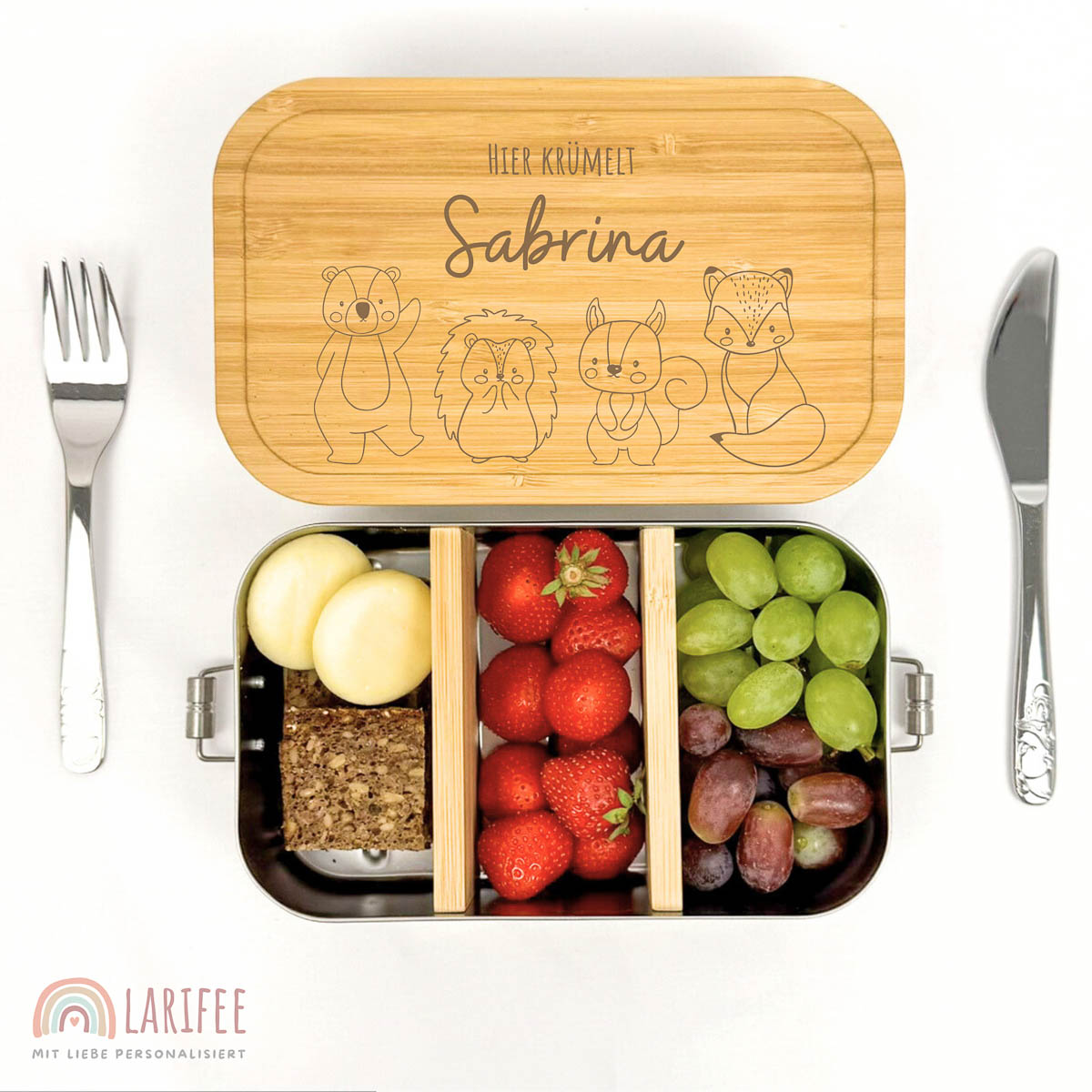 Mit Bambus-Trennwand und sicherem Verschluss ideal für Schule, Ausflug und Kita.