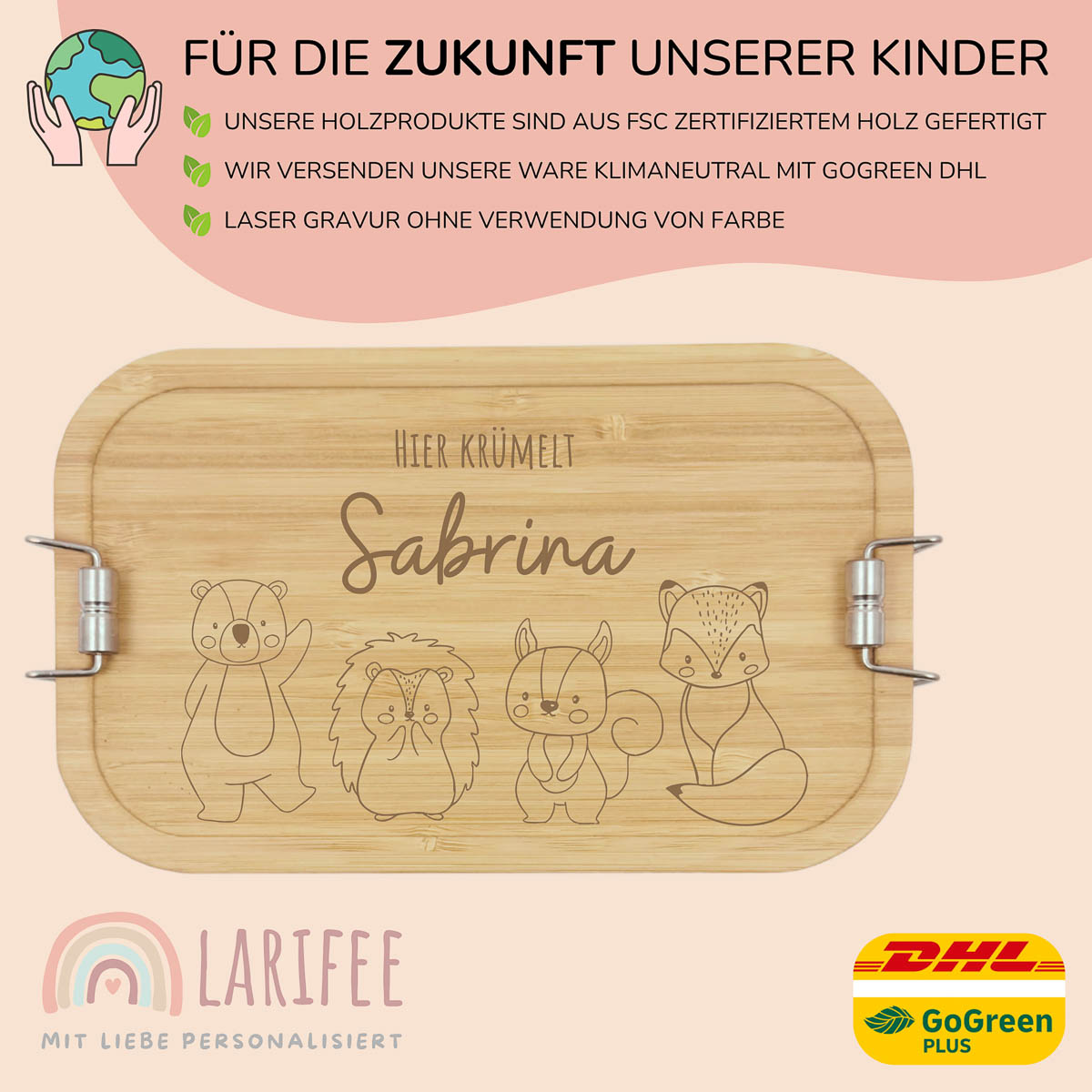 Unsere Edelstahl-Brotdose mit liebevoll gestalteten Giraffen wird durch die Personalisierung zum Einzelstück.