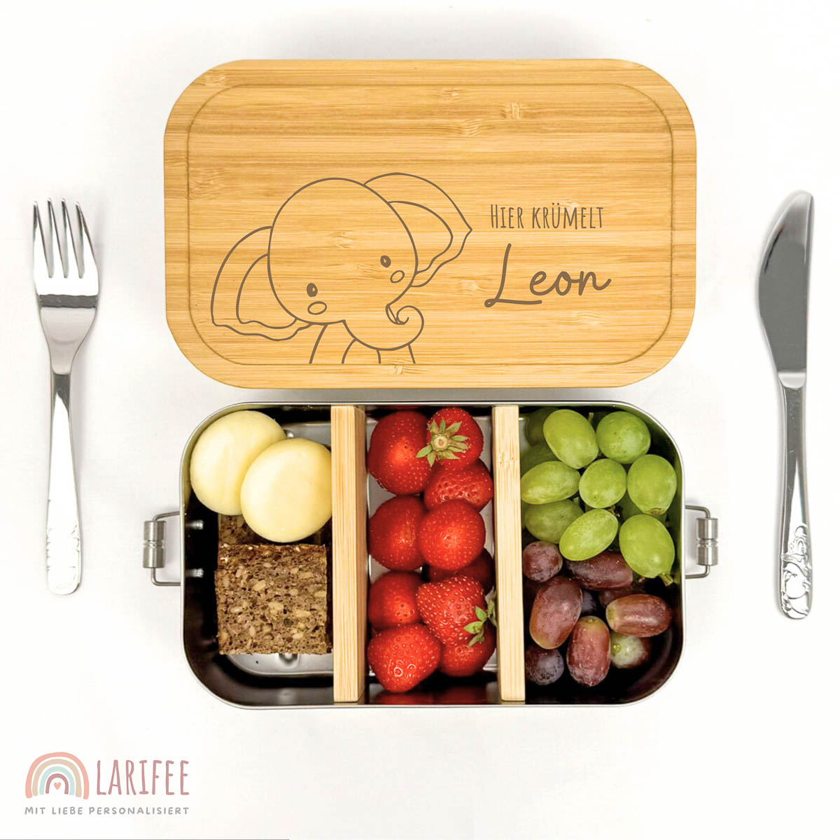 Mit dem mutigen Löwen auf dem personalisierten Deckel ist diese Brotdose aus Edelstahl ein echter Hingucker.