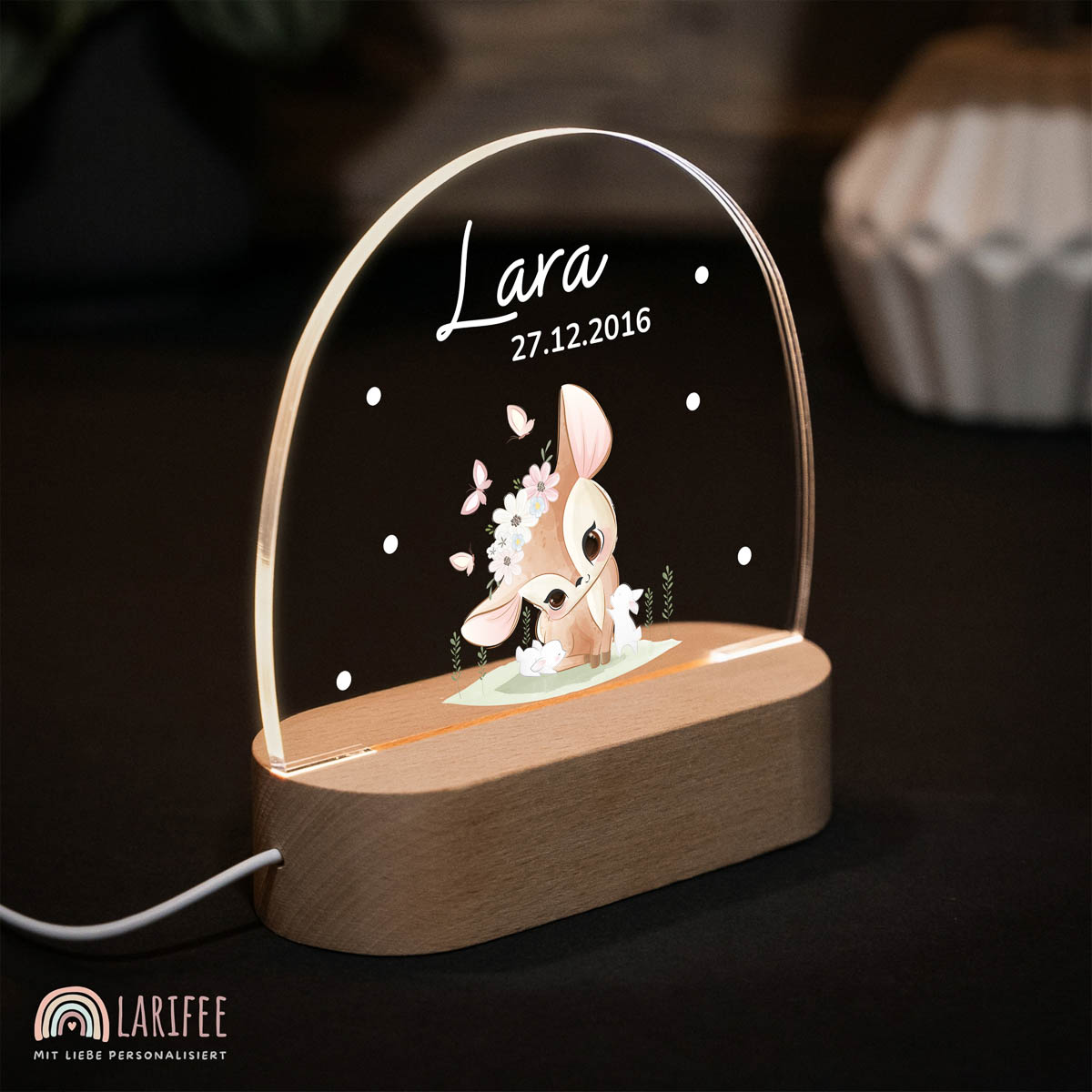Nachtlicht mit Design – Reh Kitz mit Blumen